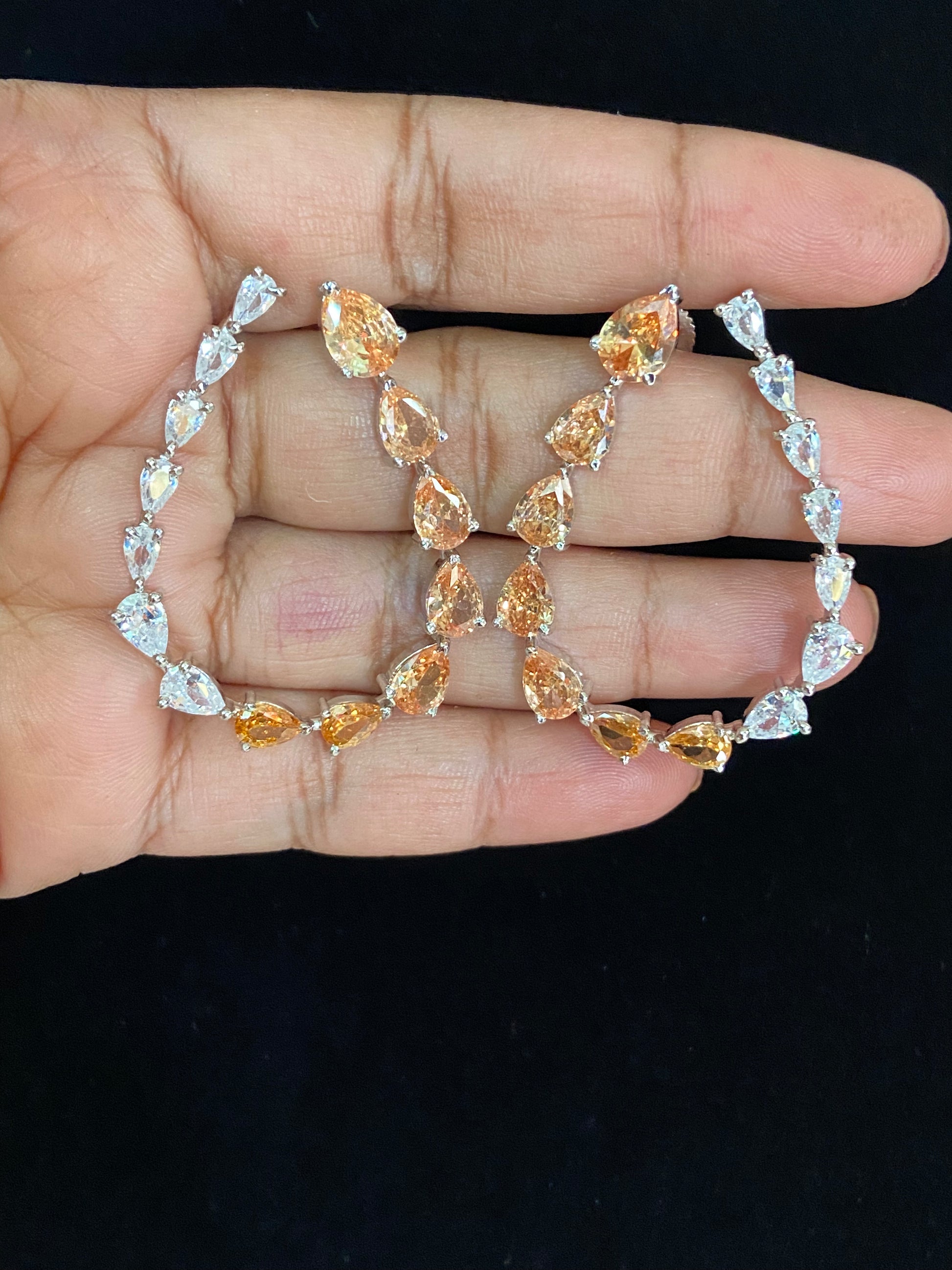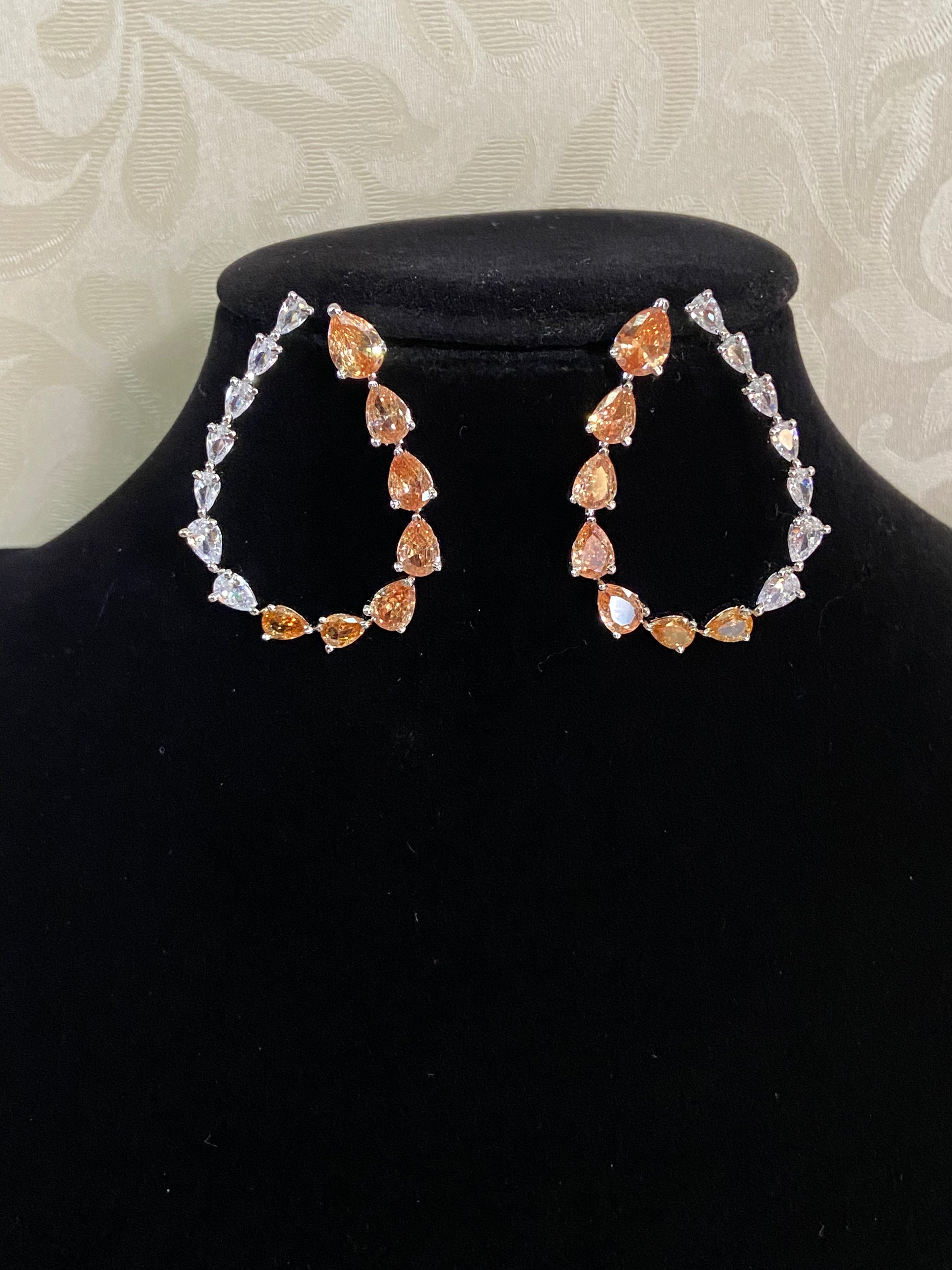 Exquisitely crafted with sparkling American Diamond (AD) stones, these earrings radiate timeless beauty and shine. Designed to complement both traditional and modern outfits, they add a touch of elegance and sophistication to any look. Perfect for weddings, celebrations, or everyday glam — a stunning choice for anyone who loves brilliant sparkle and graceful style.