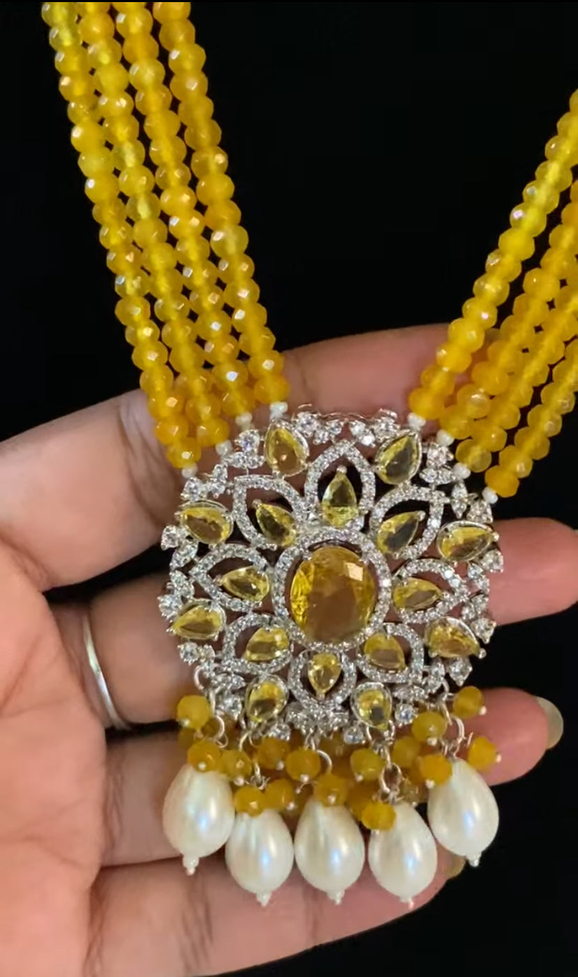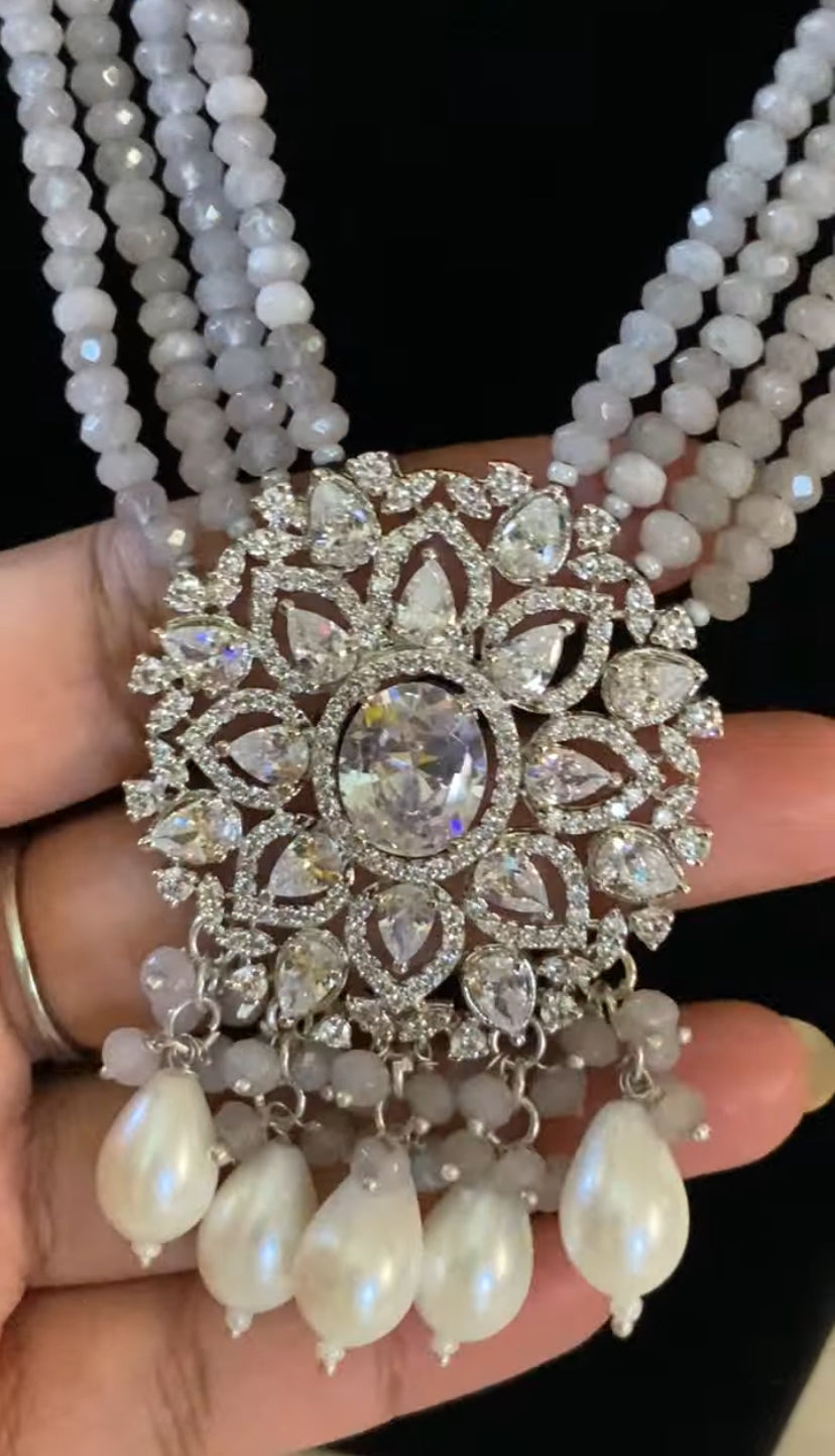 AD Pendant Onyx Beads Necklace With Earrings | Indian Necklace