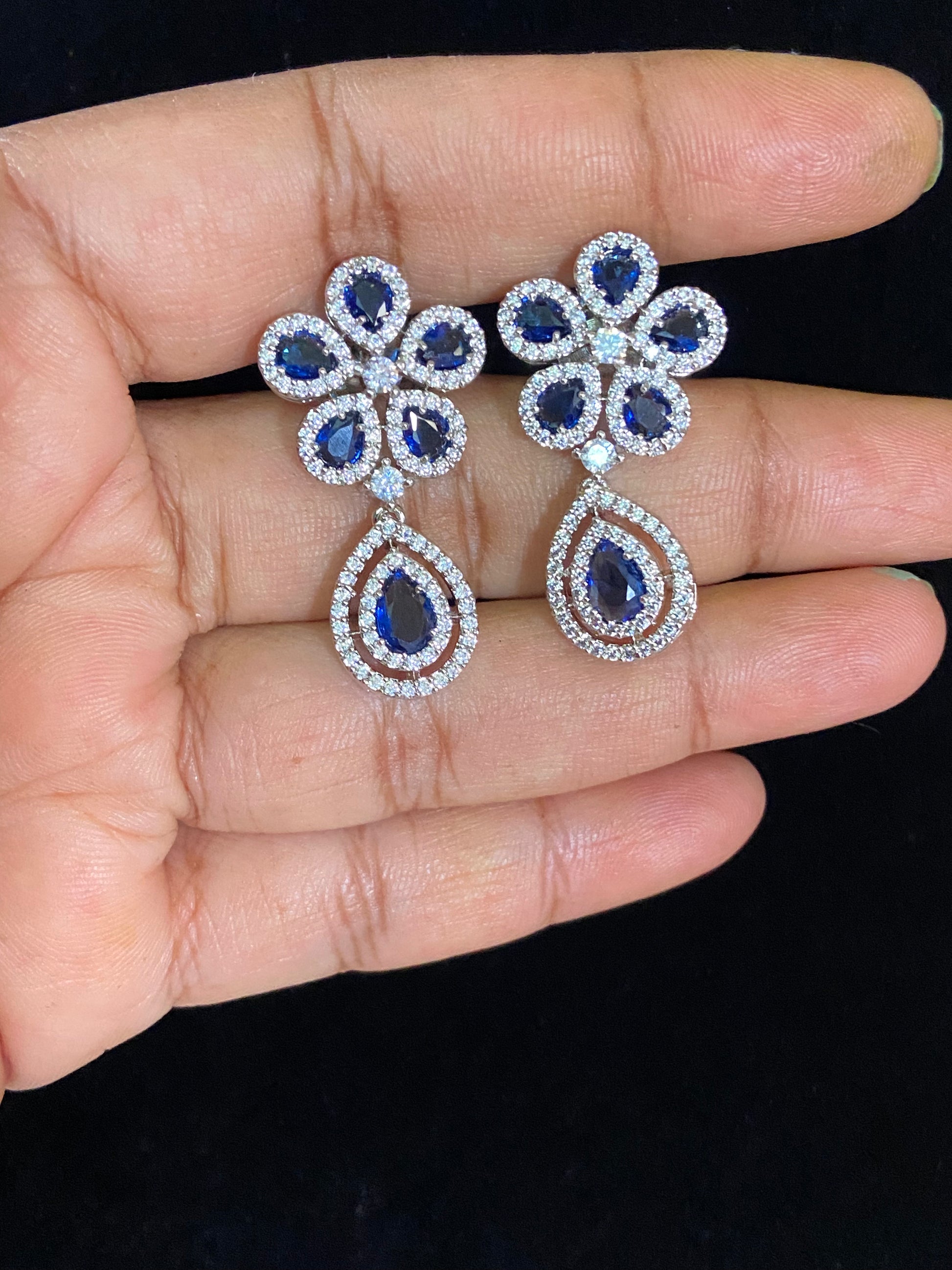 Stunning AD Rhodium Earrings with a classic Indian touch. Featuring brilliant American Diamonds and a sleek rhodium finish — perfect for traditional elegance with a modern edge."