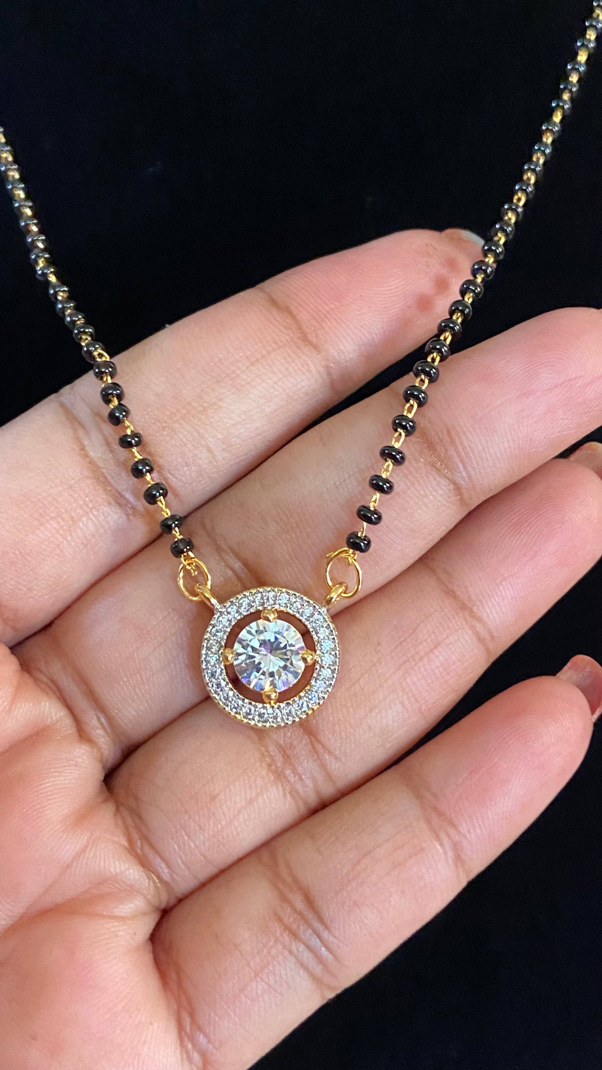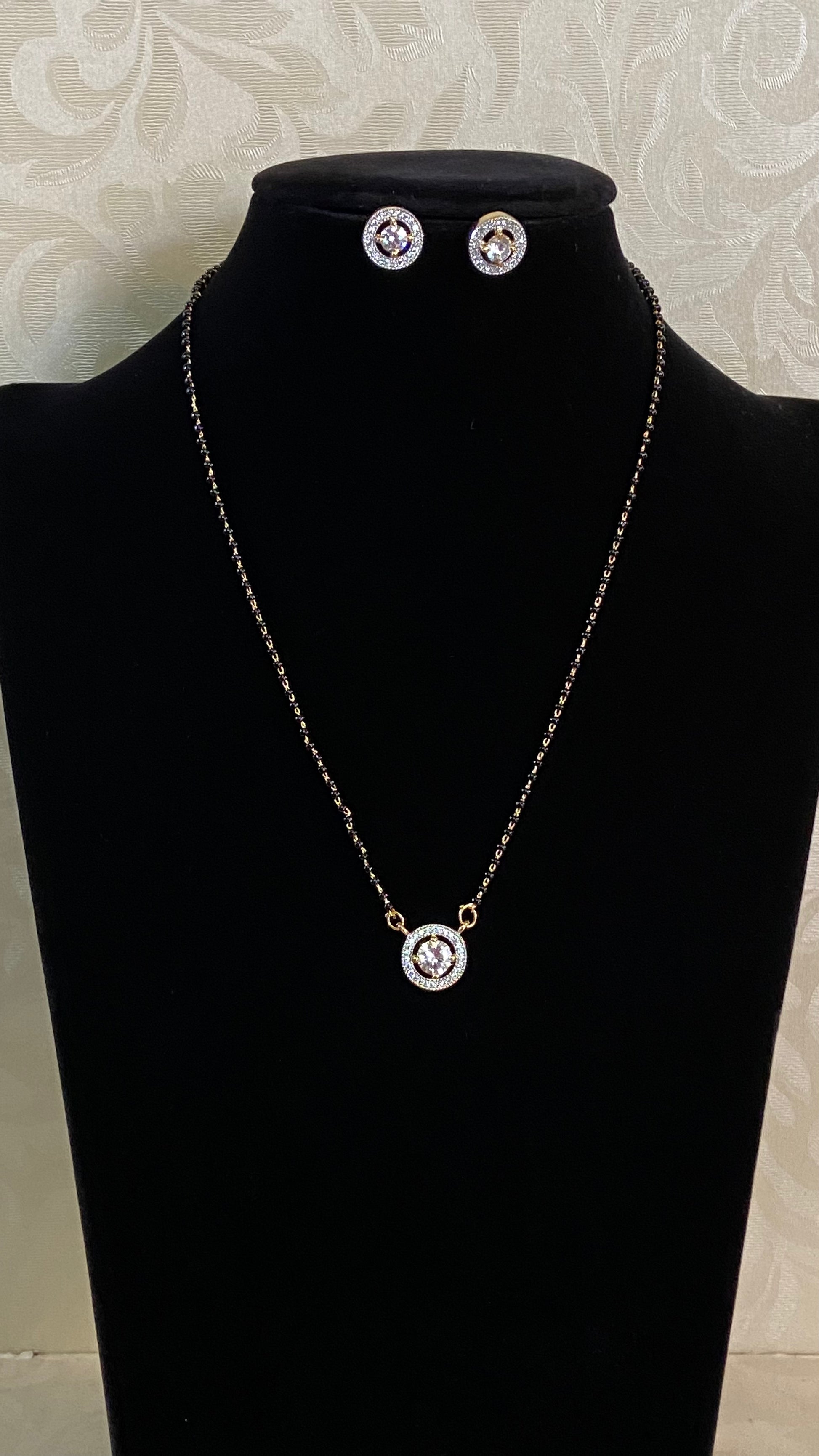 AD Simpel Mangalasutra With Studs | Black Beads Necklace