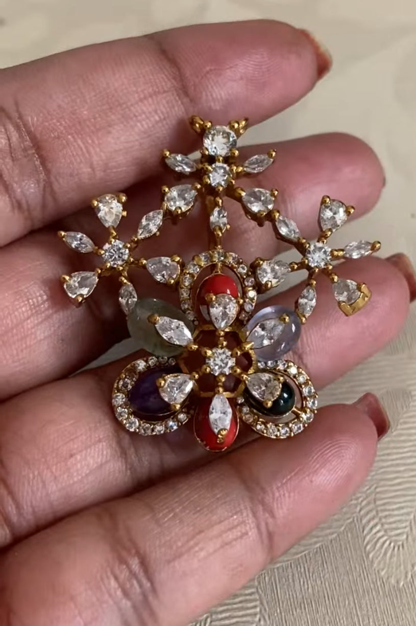 This Antique CZ Pendant Set showcases timeless elegance with intricate detailing and a rich antique finish. Adorned with sparkling cubic zirconia stones, it offers a perfect blend of traditional charm and modern brilliance. The pendant and matching earrings beautifully enhance ethnic and festive outfits. Lightweight and comfortable to wear, this set is ideal for weddings, festivals, poojas, and special occasions, making it a graceful addition to any jewelry collection.