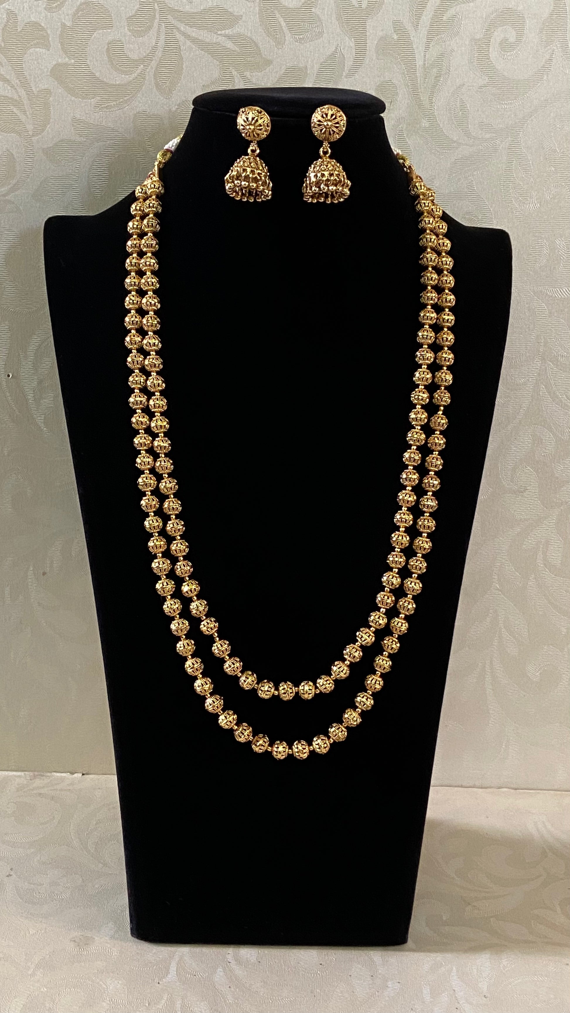 Antique Nakshi Balls Necklace with Jumkis – A traditional masterpiece crafted with detailed nakshi work and elegant ball motifs. This necklace is paired with beautifully designed jumkis, making it a perfect blend of heritage charm and timeless elegance. Ideal for weddings, festive occasions, and cultural celebrations.