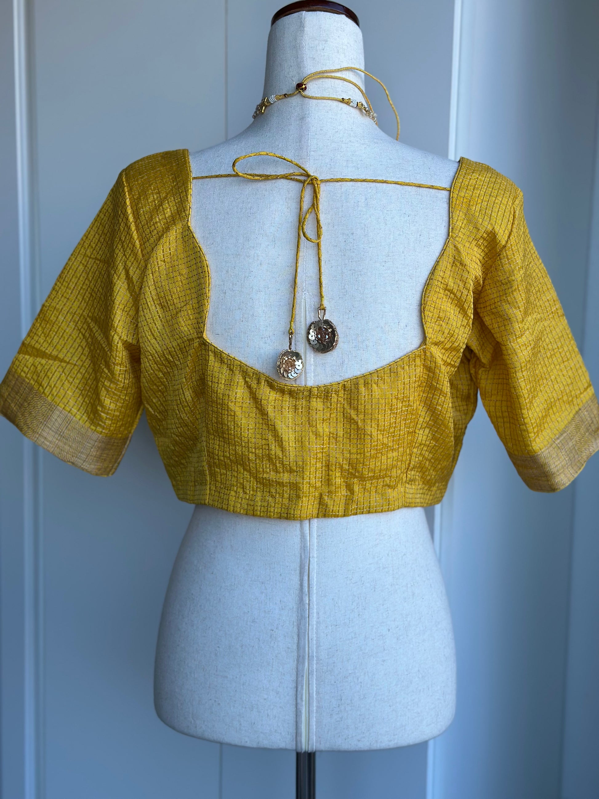 Bright and elegant Banaras yellow fancy saree crafted with a rich woven texture and festive charm. Finished with neat pico and fall for a perfect drape and ready-to-wear comfort. Ideal for weddings, festive occasions, and special celebrations.