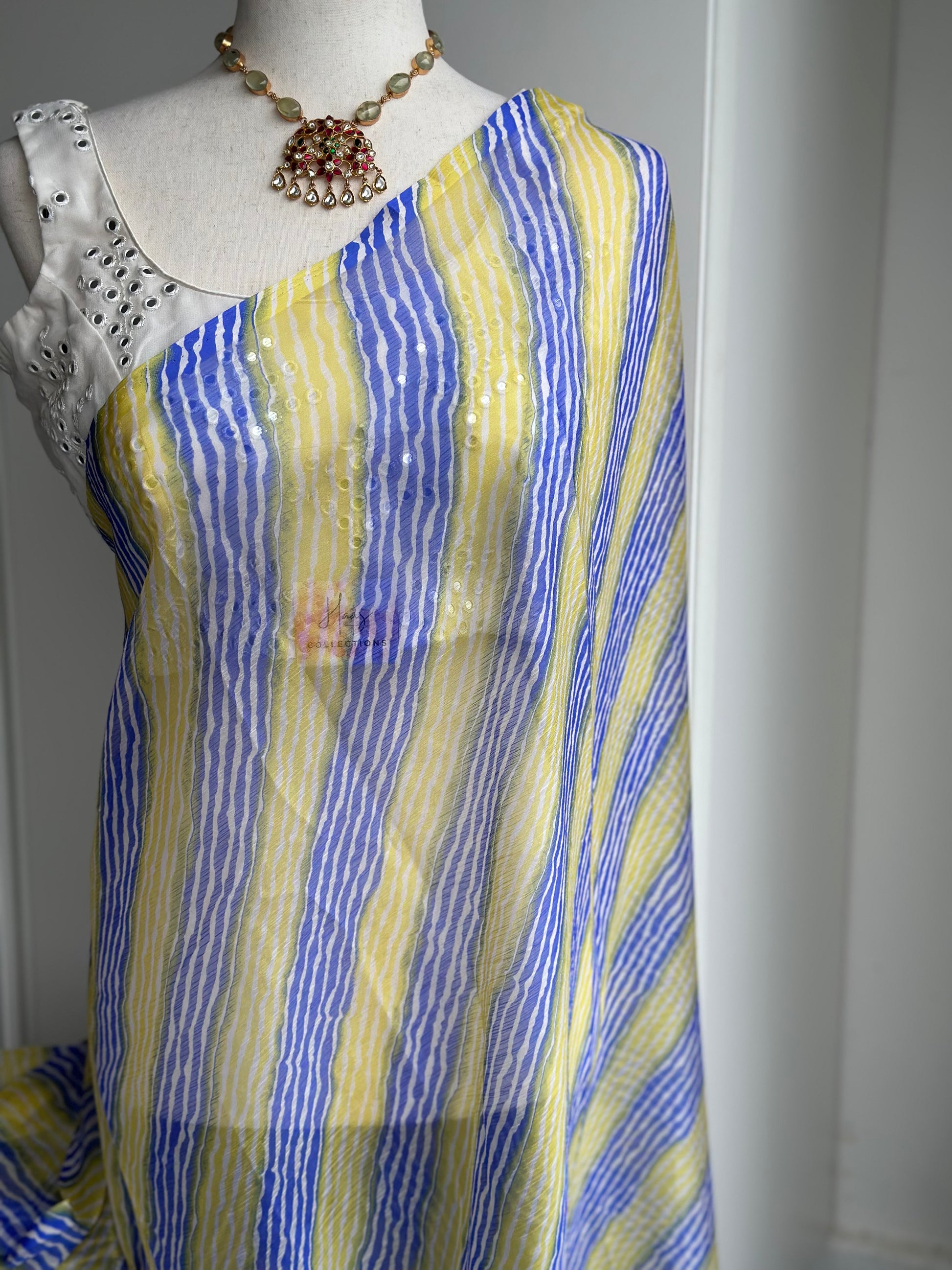 This elegant Chiffon Lightweight Saree comes with neatly finished pico and fall, ensuring a smooth and graceful drape. The saree can be beautifully paired with a Hass Collection Blouse to complete the look. Soft, airy, and comfortable to wear, it’s perfect for daily wear, parties, or festive occasions. A blend of simplicity and sophistication, this saree enhances your charm with effortless elegance.