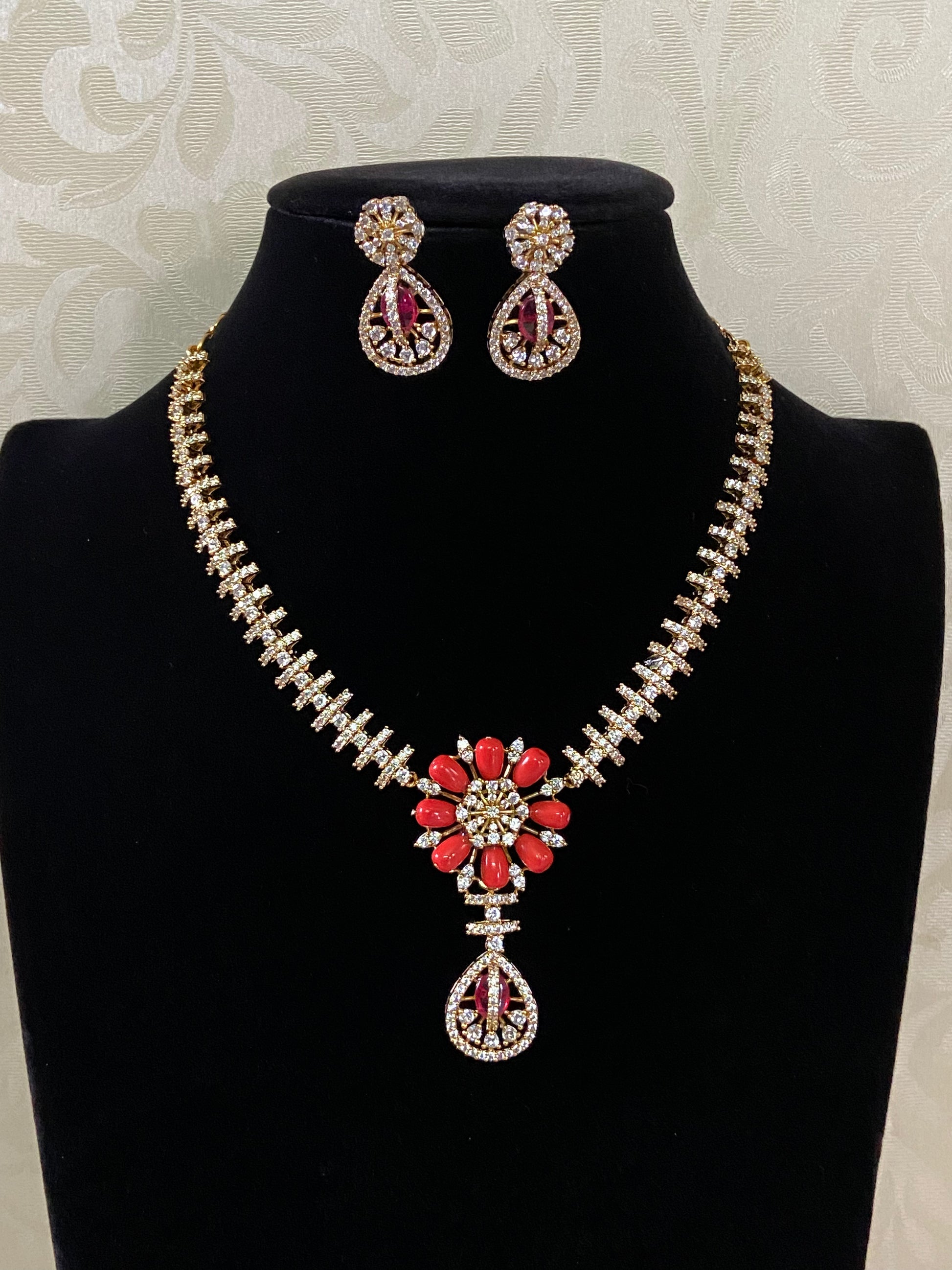 Coral Pendant AD Necklace Set | Indian Jewelry In USA | Gift Idea