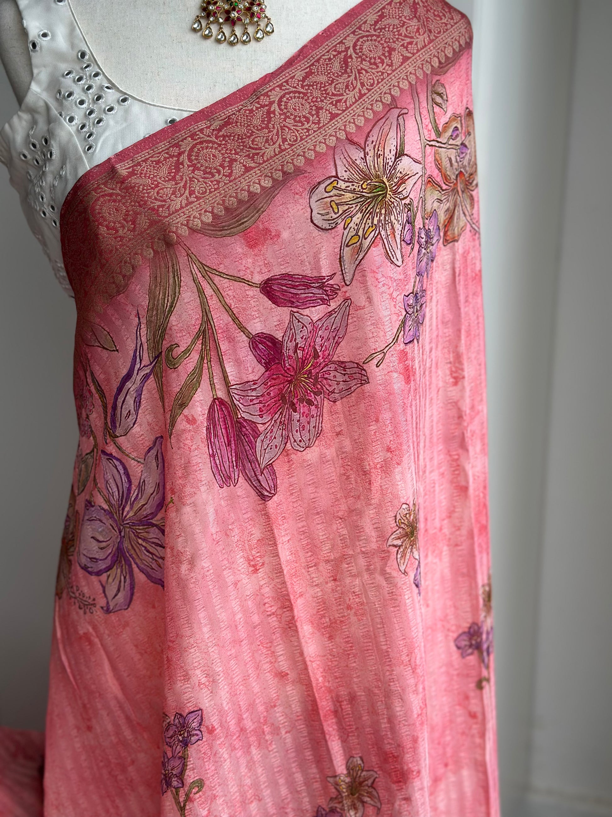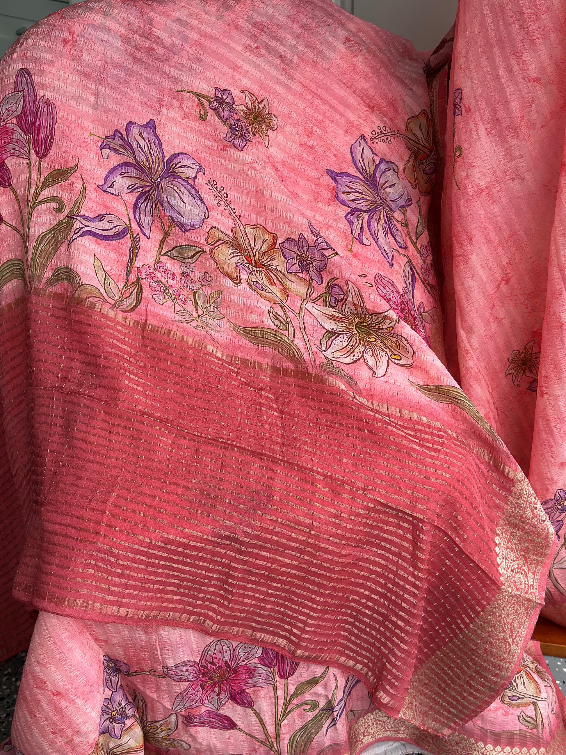 This beautiful Crush Georgette Saree comes with neatly done pico and fall, giving it a perfect finish. You can pair it with a Hass Collection Blouse to enhance its elegant look. Lightweight and soft in texture, this saree is ideal for festive occasions, parties, or special events. Combining comfort with modern style, it adds a graceful and charming touch to your overall appearance.