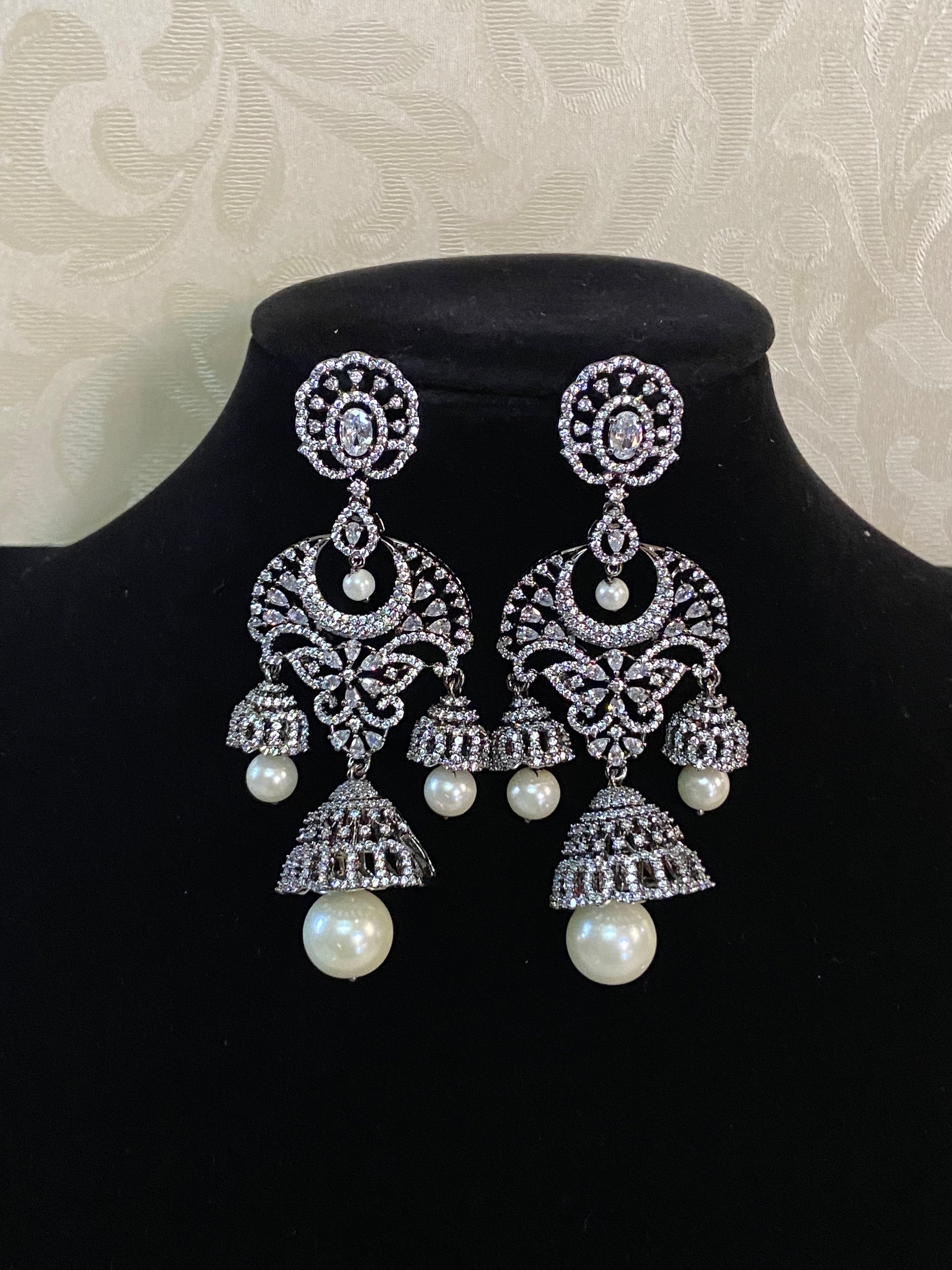 CZ Black Rhodium Jumki Earrings | Indian Earrings In USA