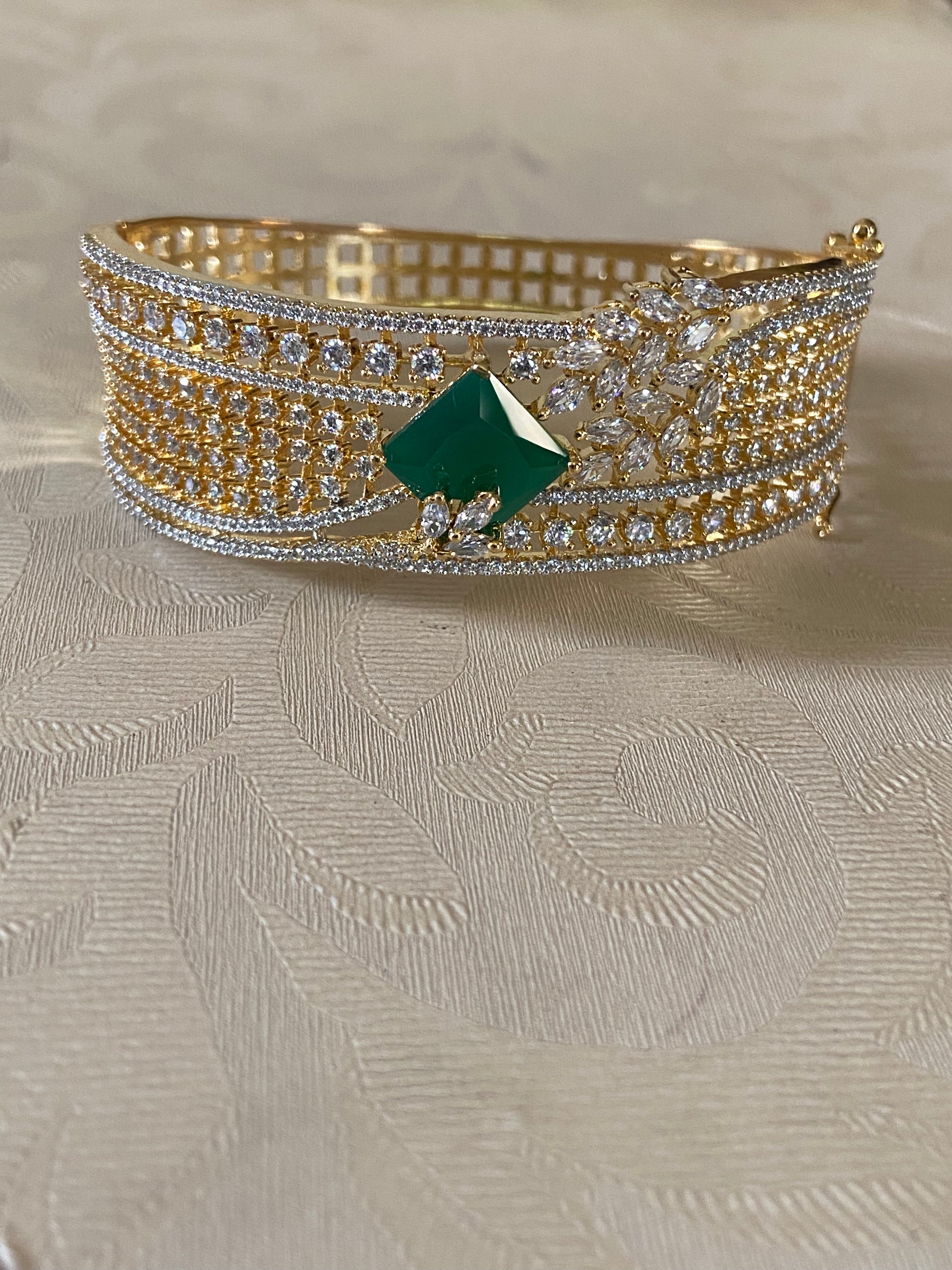 CZ Emerald 2Tone Bracelet | Openable Bracelet | Indian Jewelry | Gift Idea