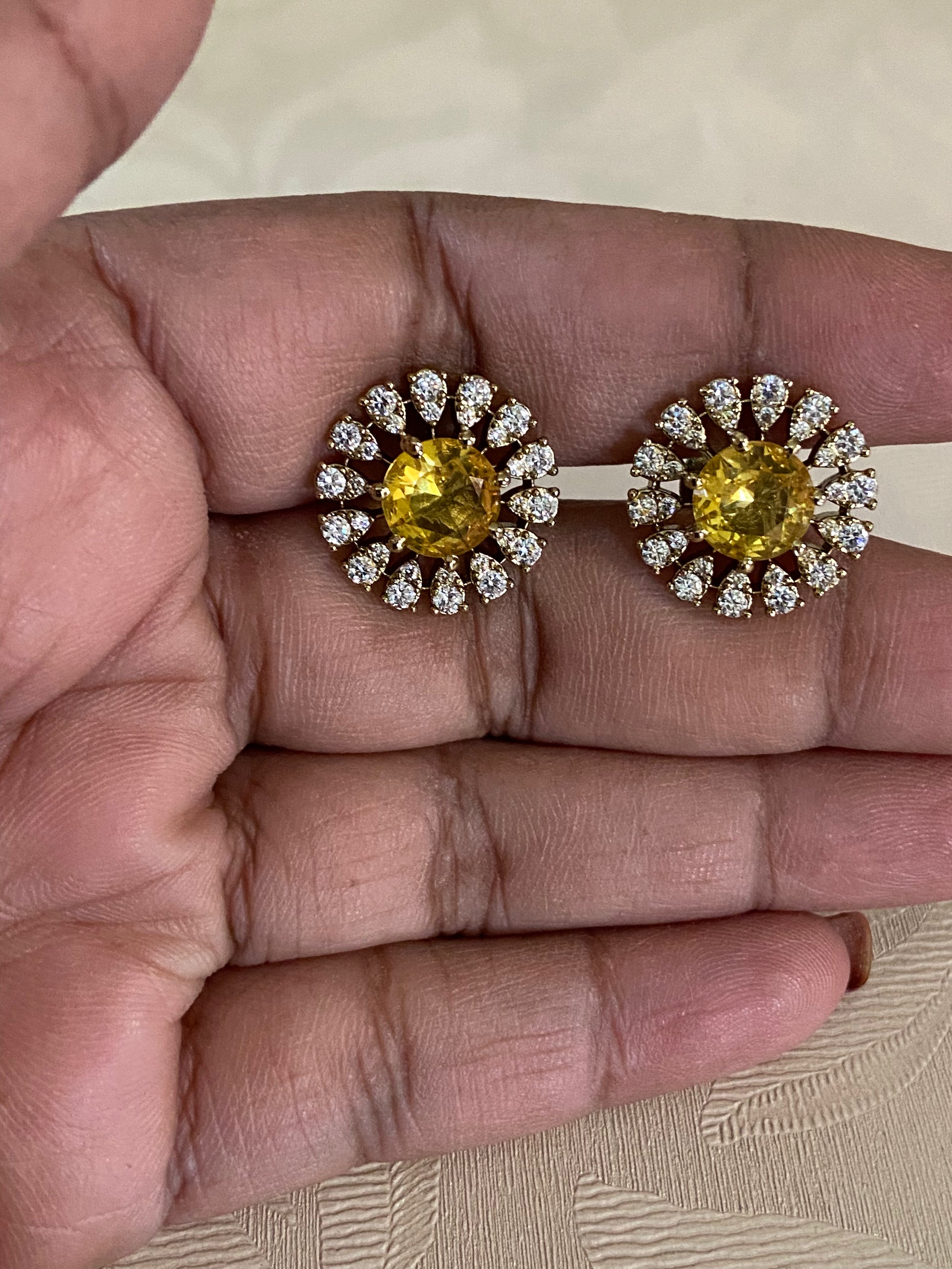 Elegant CZ studs finished with rich mehndi plating for a classic Indian look. Simple yet graceful in design, these lightweight tops are perfect for daily wear, festive styling, and easy pairing with ethnic and fusion outfits.