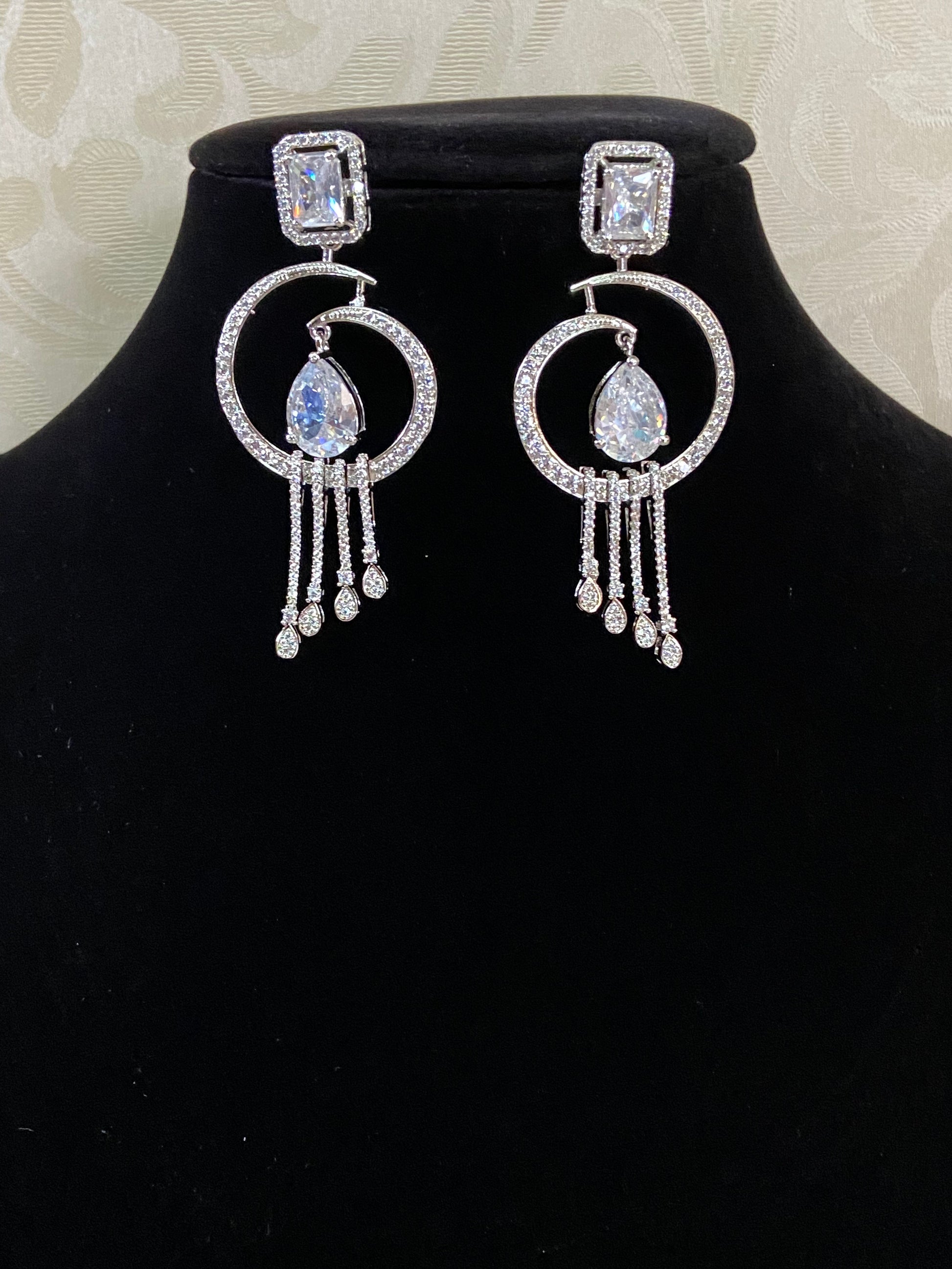 CZ Rhodium Earrings | Indian Jewelry In USA | Gift Idea
