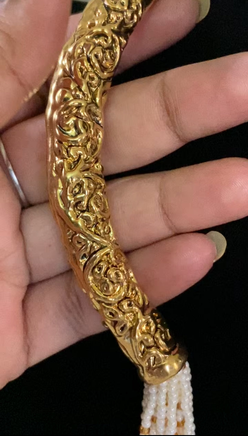 Designer Pearl Necklace | Traditional Pearl Mala with Antique Gold Necklace | Gift Idea
