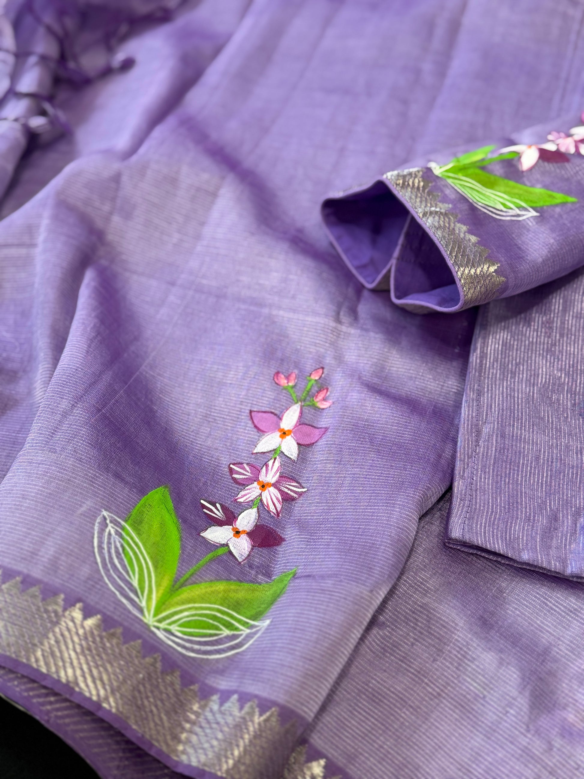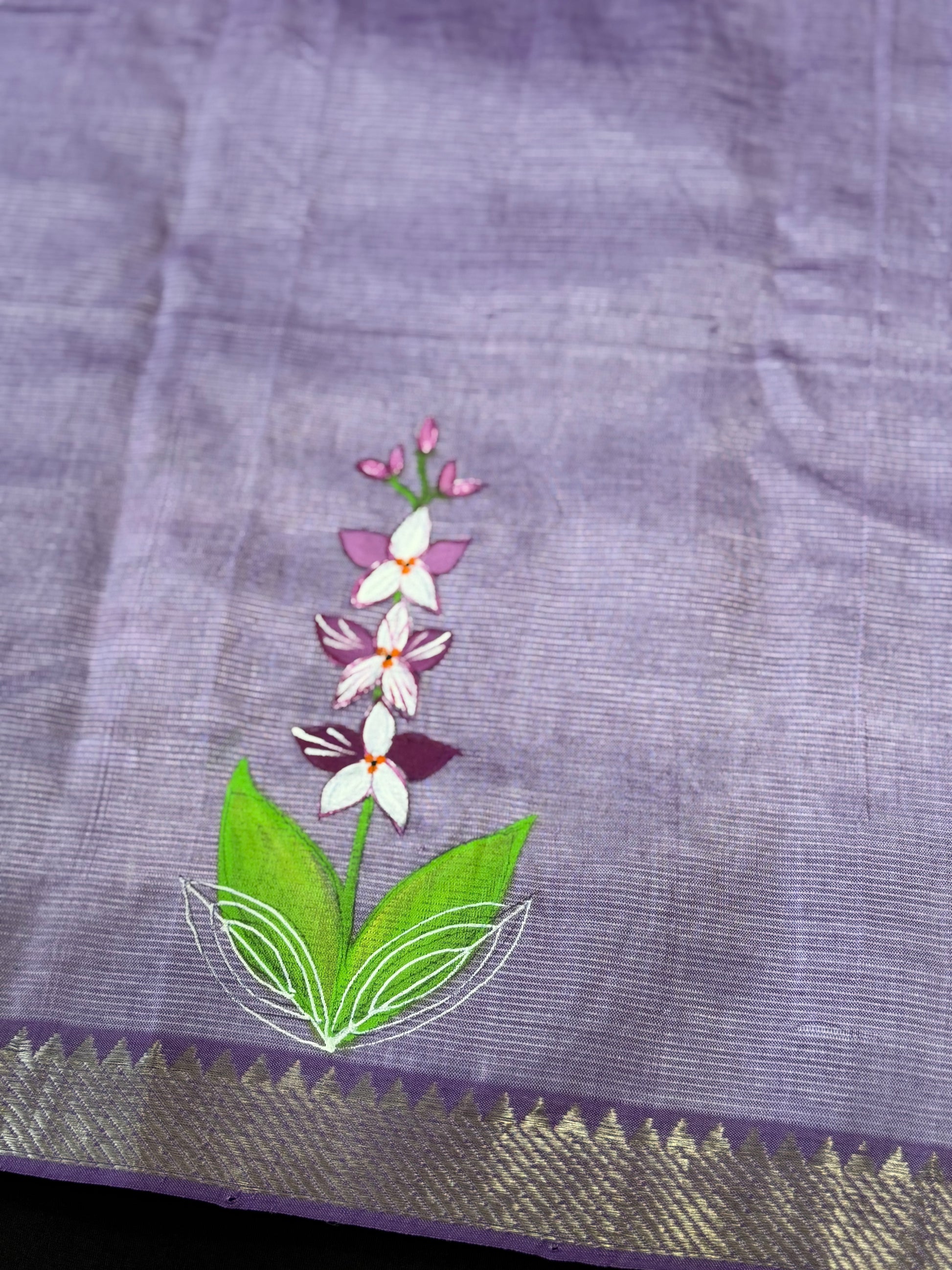 Hand Painted Mangalagiri Handloom Saree is a perfect blend of tradition and elegance. Crafted from fine handloom cotton, this saree features beautiful hand-painted designs that add a unique artistic charm. The fabric is lightweight, breathable, and ideal for all-day comfort. Neatly finished with pico fall, the saree offers a graceful drape and durability. It comes with a matching stitched blouse, tailored for a perfect fit and effortless styling. Ideal for festive occasions, cultural events, office wear, or casual gatherings, this saree reflects timeless South Indian craftsmanship and makes a graceful addition to any ethnic wardrobe.