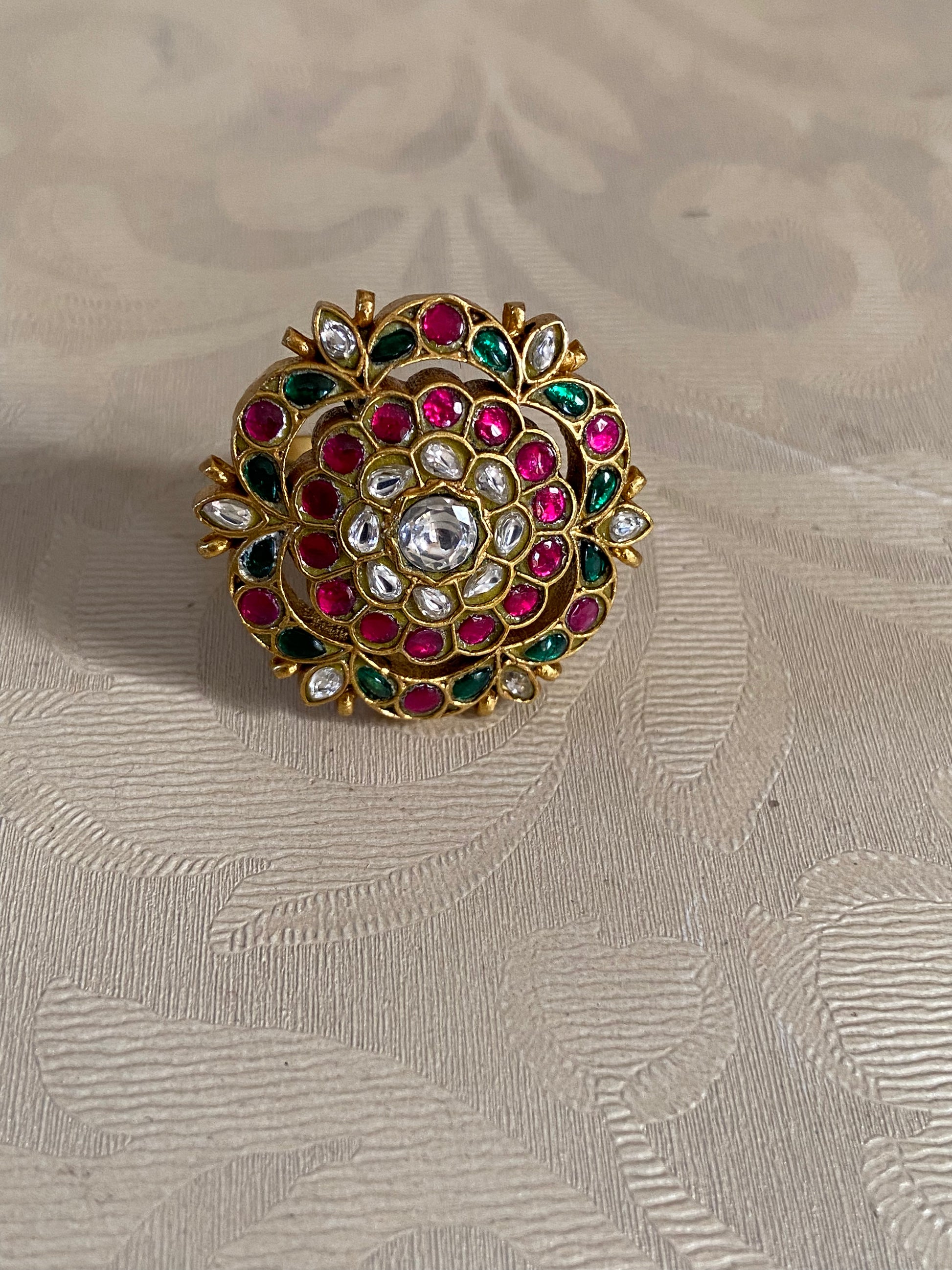 This Traditional Finger Ring embodies classic elegance and timeless charm. Expertly crafted with intricate detailing, it reflects rich cultural heritage and refined artistry. Designed to complement both everyday and festive attire, the ring adds a graceful accent to any look. Comfortable to wear and visually striking, it makes a meaningful gift for special occasions like weddings, anniversaries, and celebrations. A beautiful piece that celebrates tradition with enduring style and sophistication.
