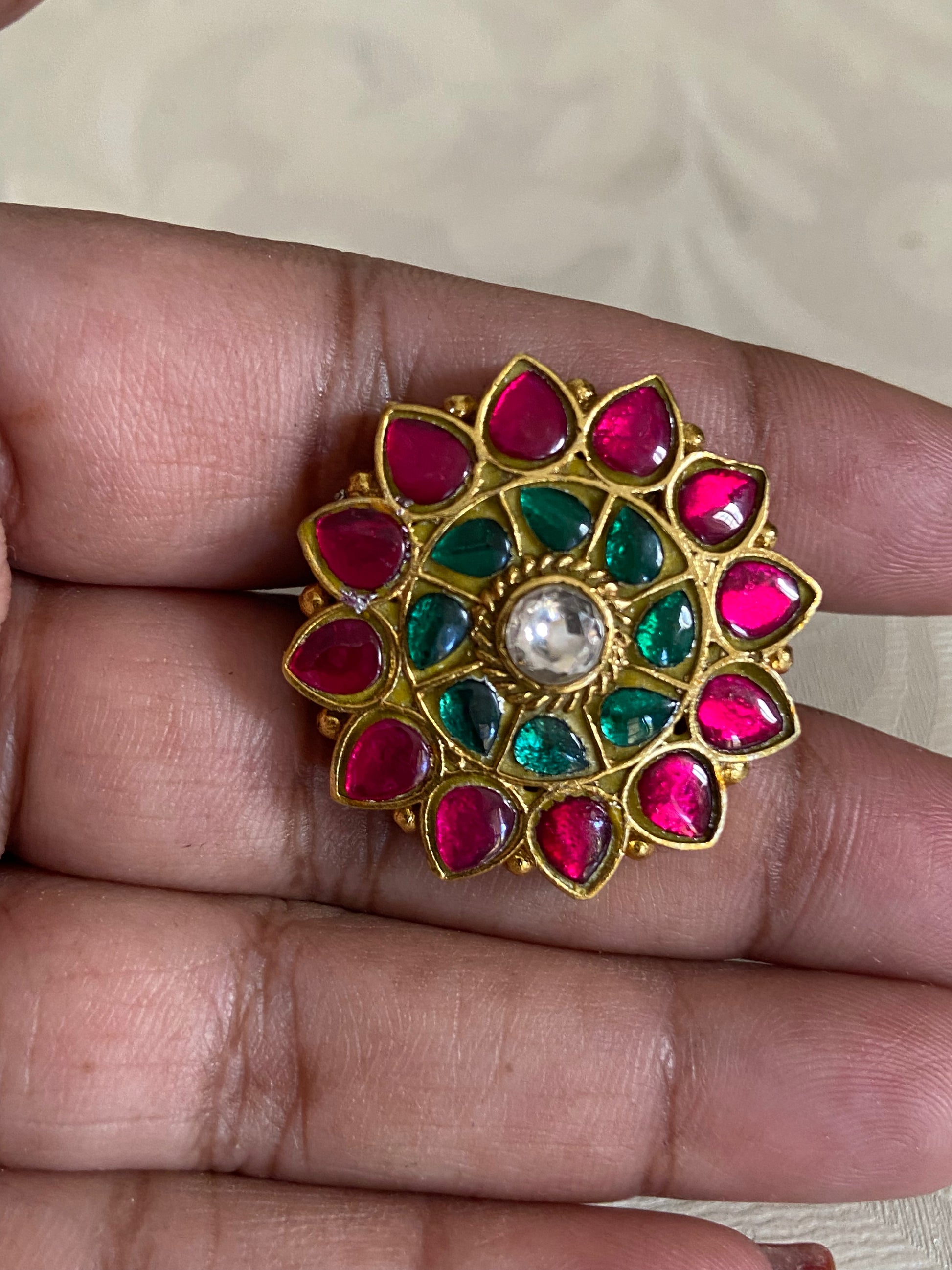 This Traditional Finger Ring embodies classic elegance and timeless charm. Expertly crafted with intricate detailing, it reflects rich cultural heritage and refined artistry. Designed to complement both everyday and festive attire, the ring adds a graceful accent to any look. Comfortable to wear and visually striking, it makes a meaningful gift for special occasions like weddings, anniversaries, and celebrations. A beautiful piece that celebrates tradition with enduring style and sophistication.