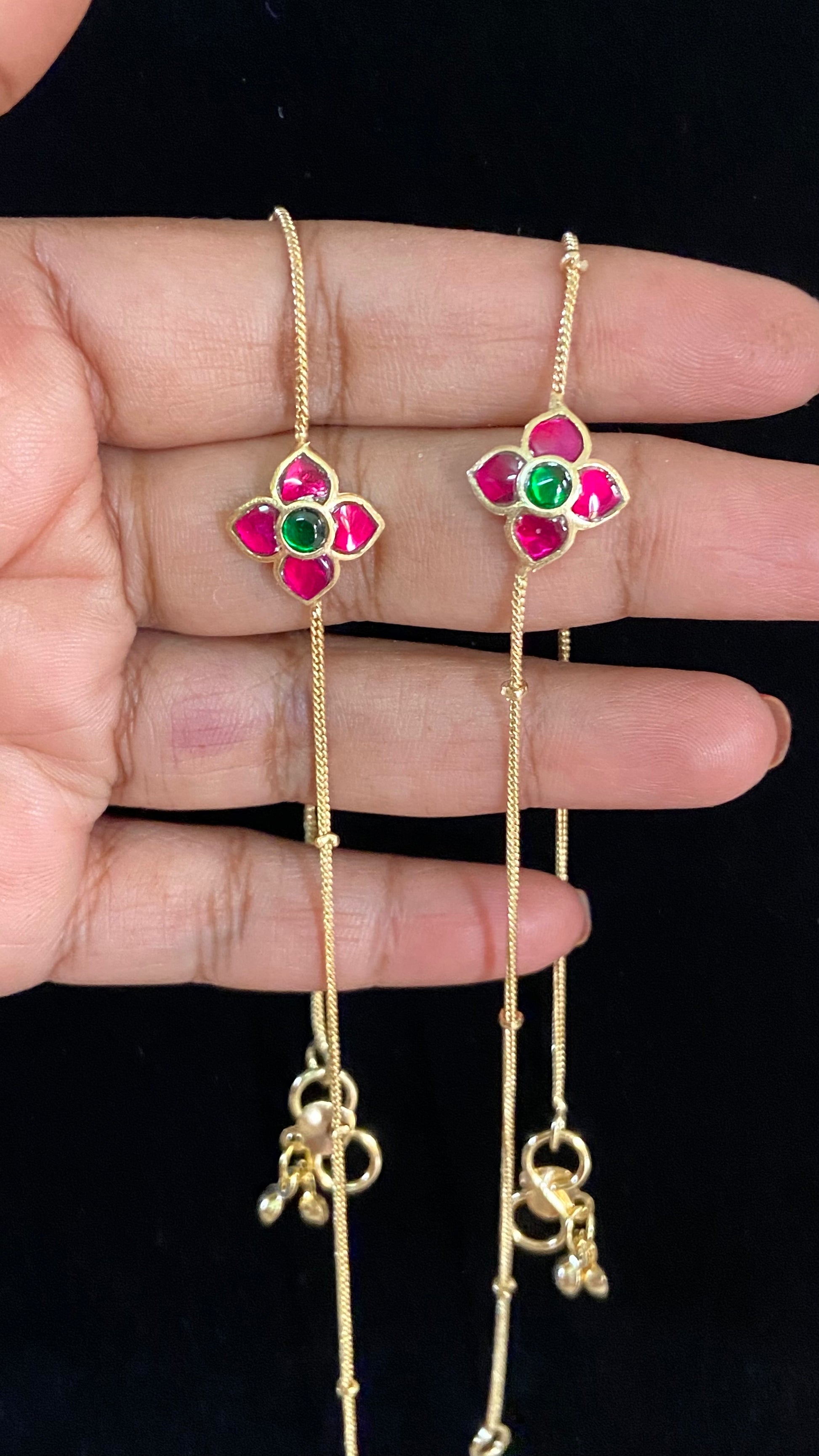Jadau Kundan Floral Anklets | Antique Jadau Payal | Traditional Jewelry In USA