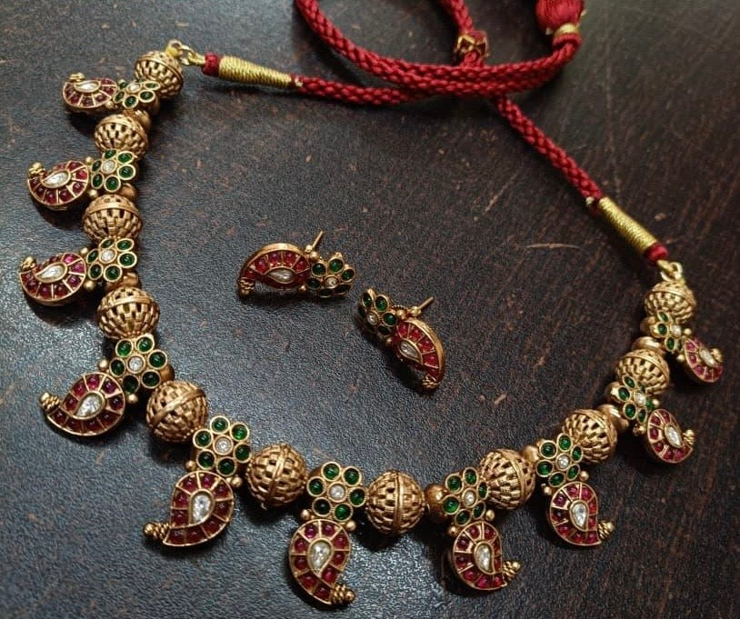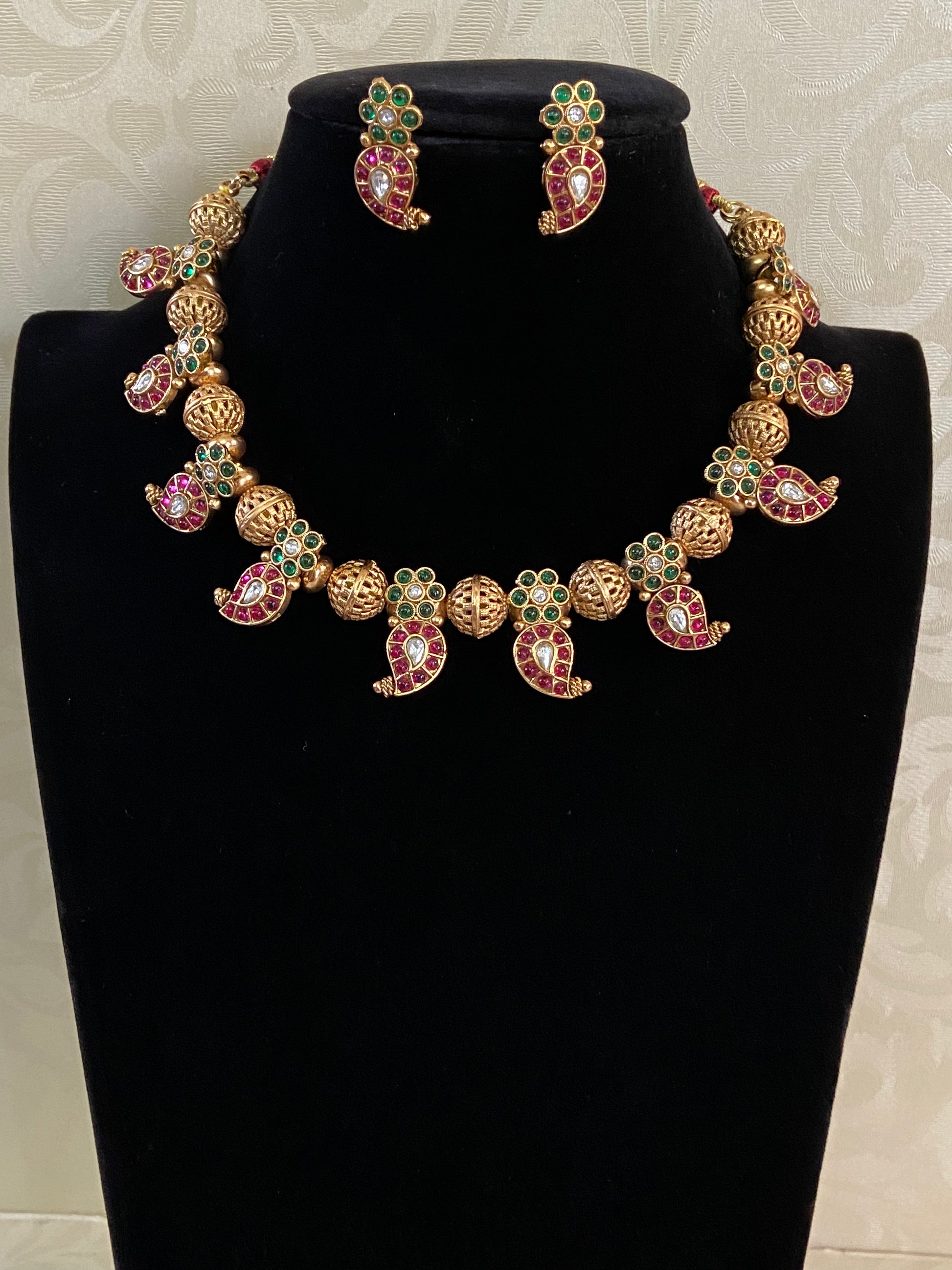 Kemp Mango Pendants Gold Beads Necklace Set | Traditional Indian Jewelry In USA