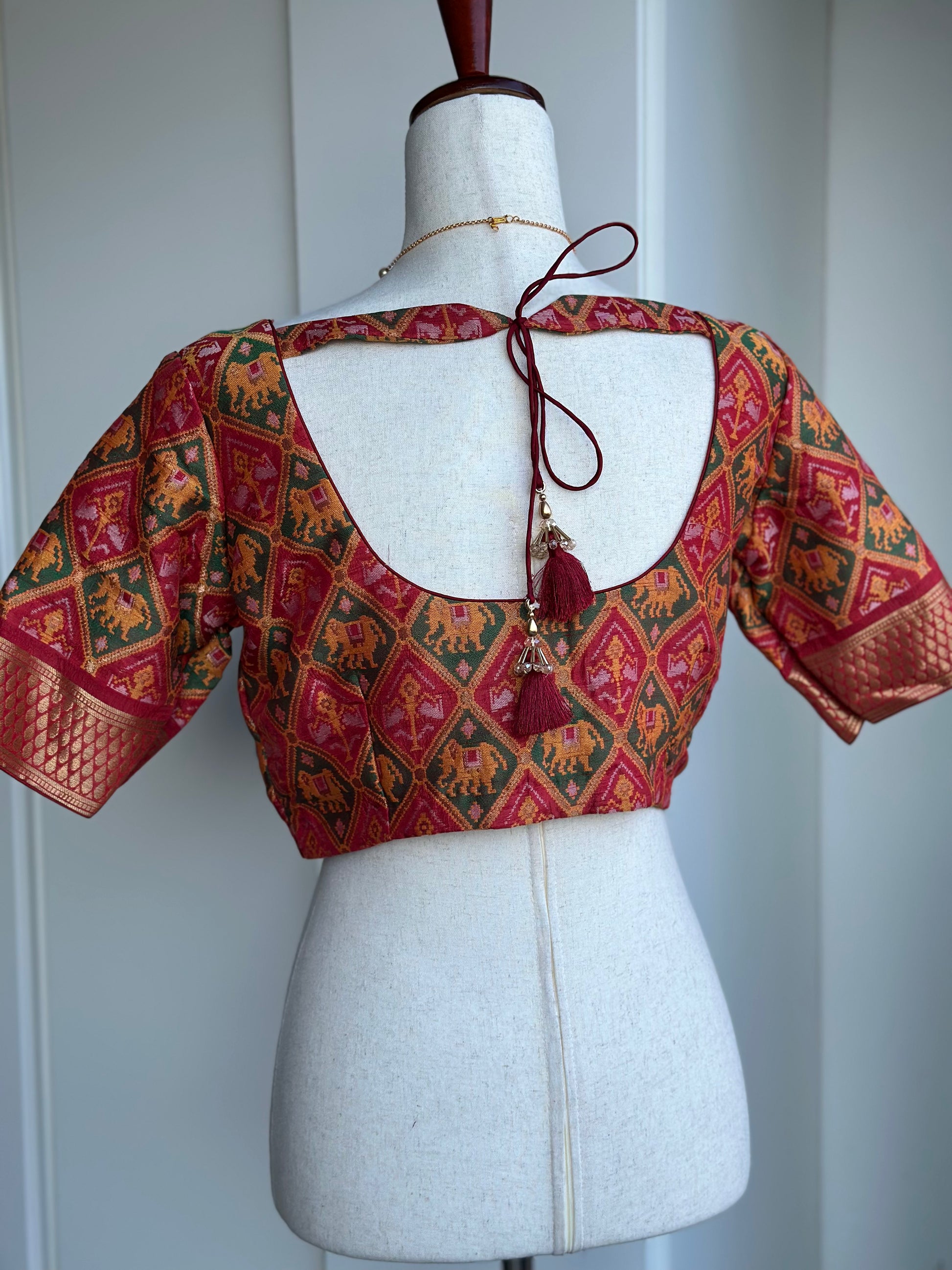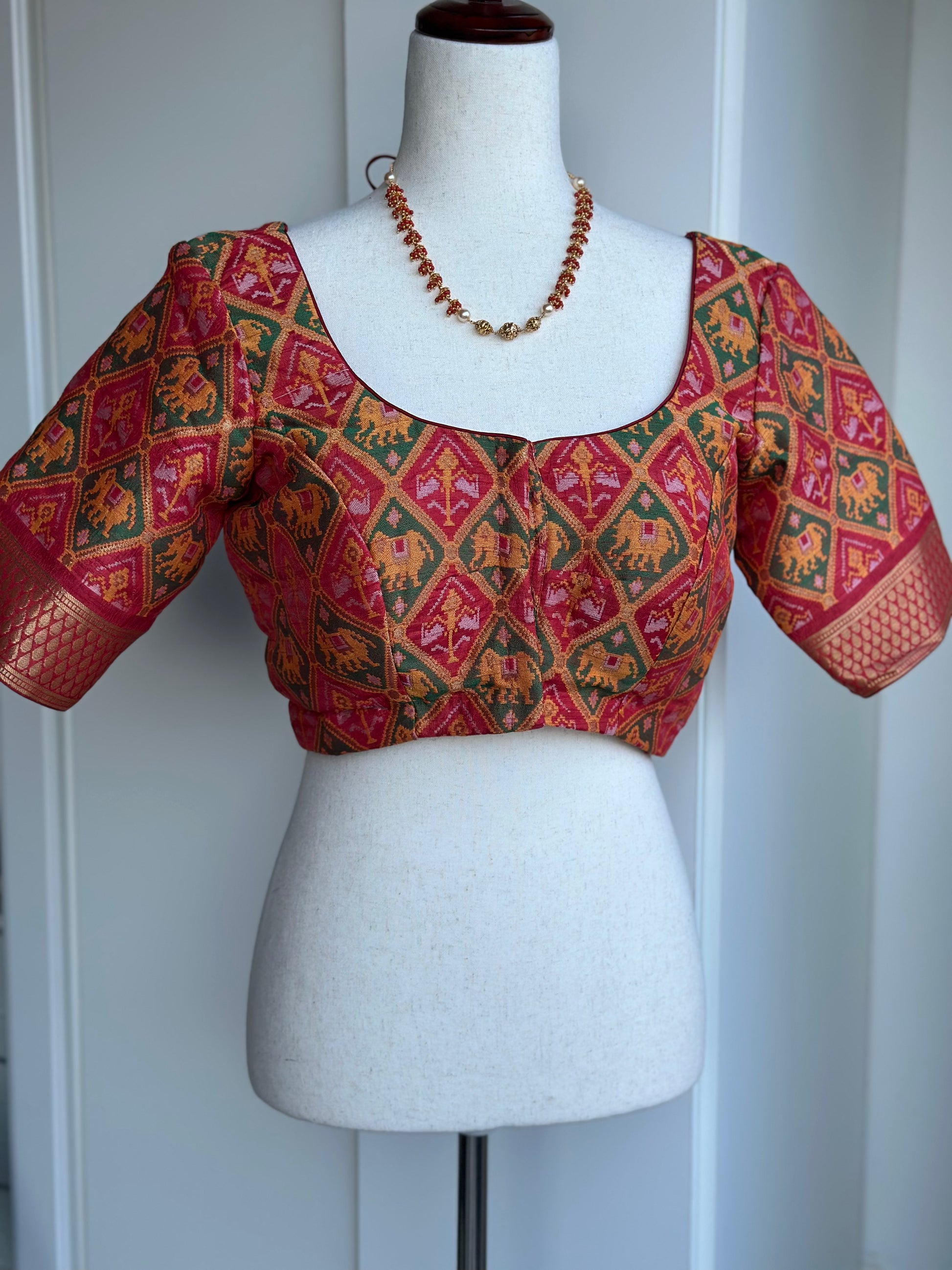 Grace your special occasions with this elegant Malai Silk Bandini Patola Saree, featuring rich traditional patterns and a smooth, lustrous finish. The saree comes with pico and fall done for a ready-to-wear experience.Includes a stitched blouse tailored to complement the saree’s exquisite design — making it a perfect blend of comfort, tradition, and style.
