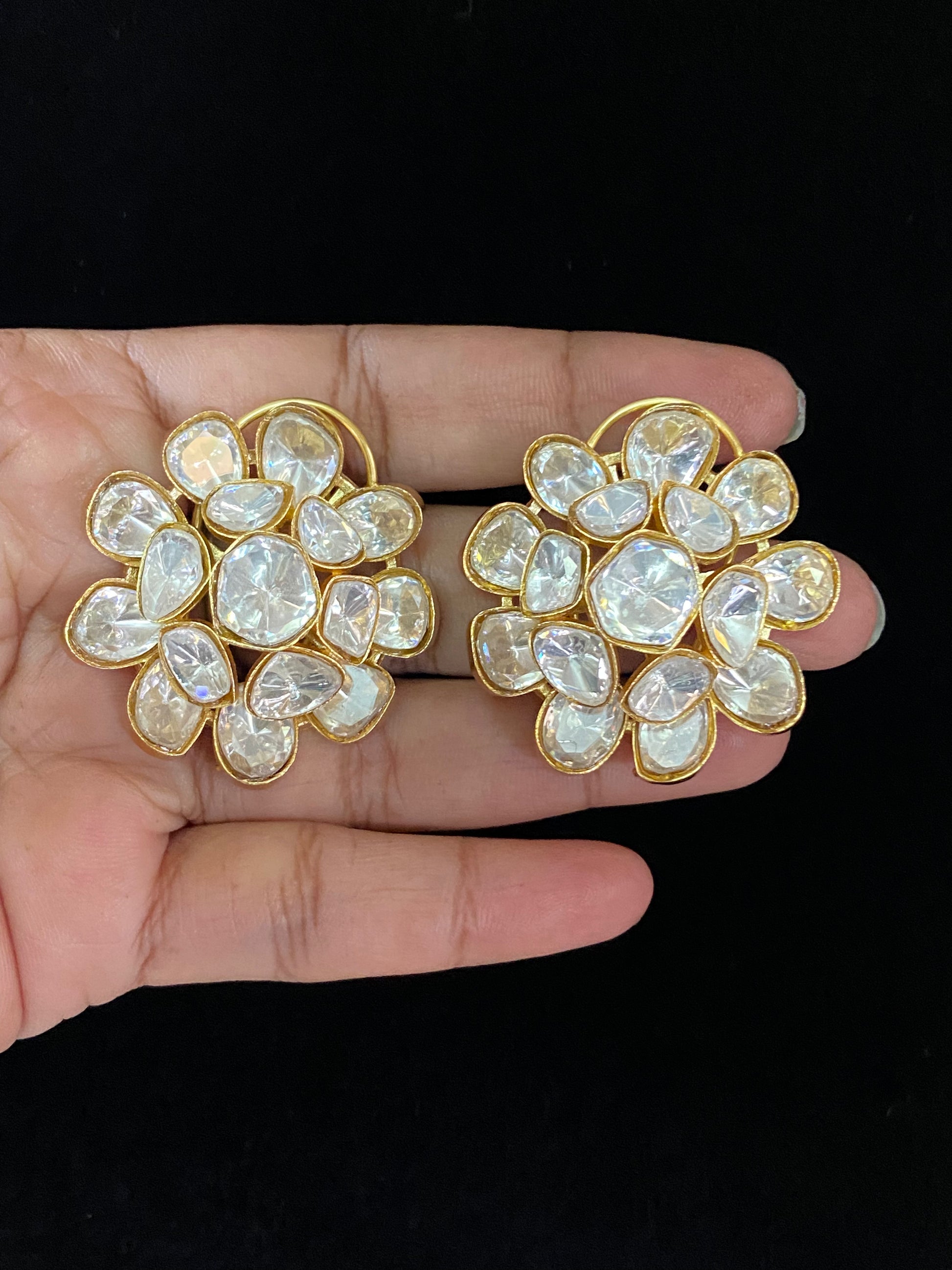 Moissanite Polki stud earrings combine the charm of traditional Polki jewelry with the brilliance of moissanite, offering a more sustainable and affordable alternative to diamonds. Here’s a quick overview of what makes these earrings