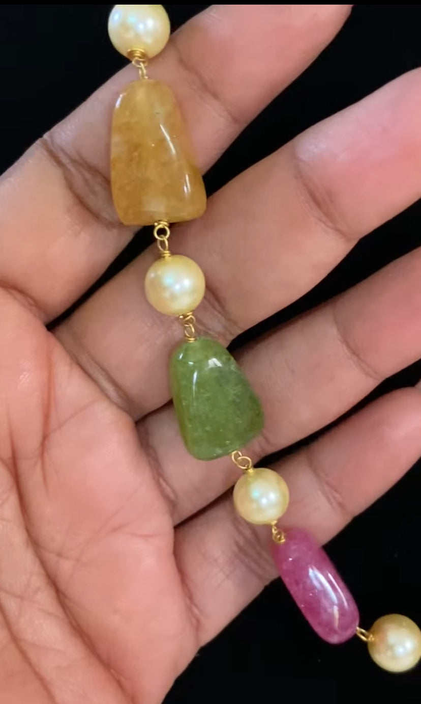 MultiColor stones & Pearls Mala Necklace | Simple Necklace | Indian Jewelry
