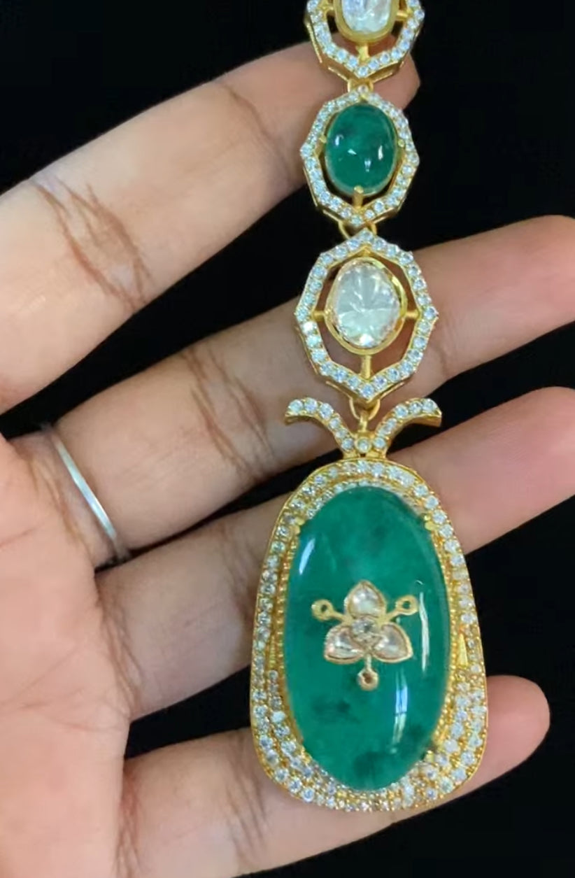 This stunning Polki Doublet Kundan necklace set features beautifully crafted stones that offer a rich, traditional shine. The doublet Polki pieces enhance the brilliance, giving the set a premium and royal look. Designed with intricate Kundan detailing, it pairs perfectly with festive, bridal, and ethnic outfits. The set comes with matching earrings, making it a complete and graceful addition to your jewelry collection. A perfect choice for those who love classic elegance with a modern touch.