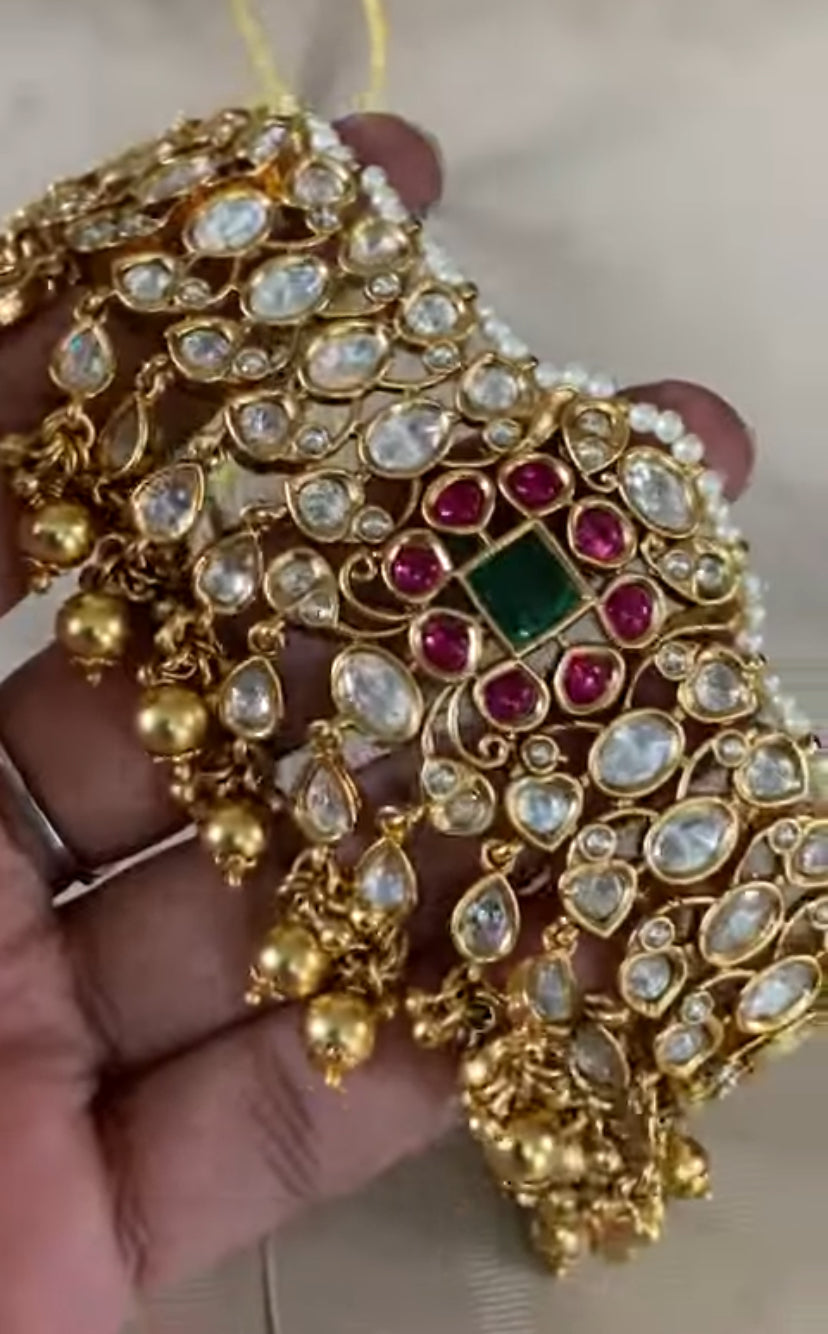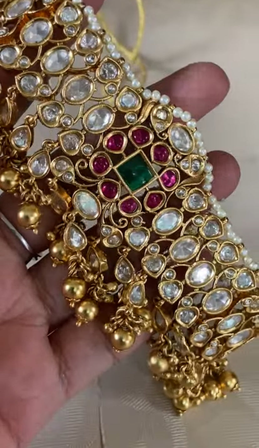 Enhance your ethnic elegance with this stunning Polki Kundan Choker Set, featuring intricately crafted polki kundan stones that exude royal charm. Designed with timeless artistry and paired with matching earrings, this choker is perfect for weddings, festive occasions, and bridal wear. A classic blend of tradition and sophistication, it makes a graceful statement with any ethnic attire.