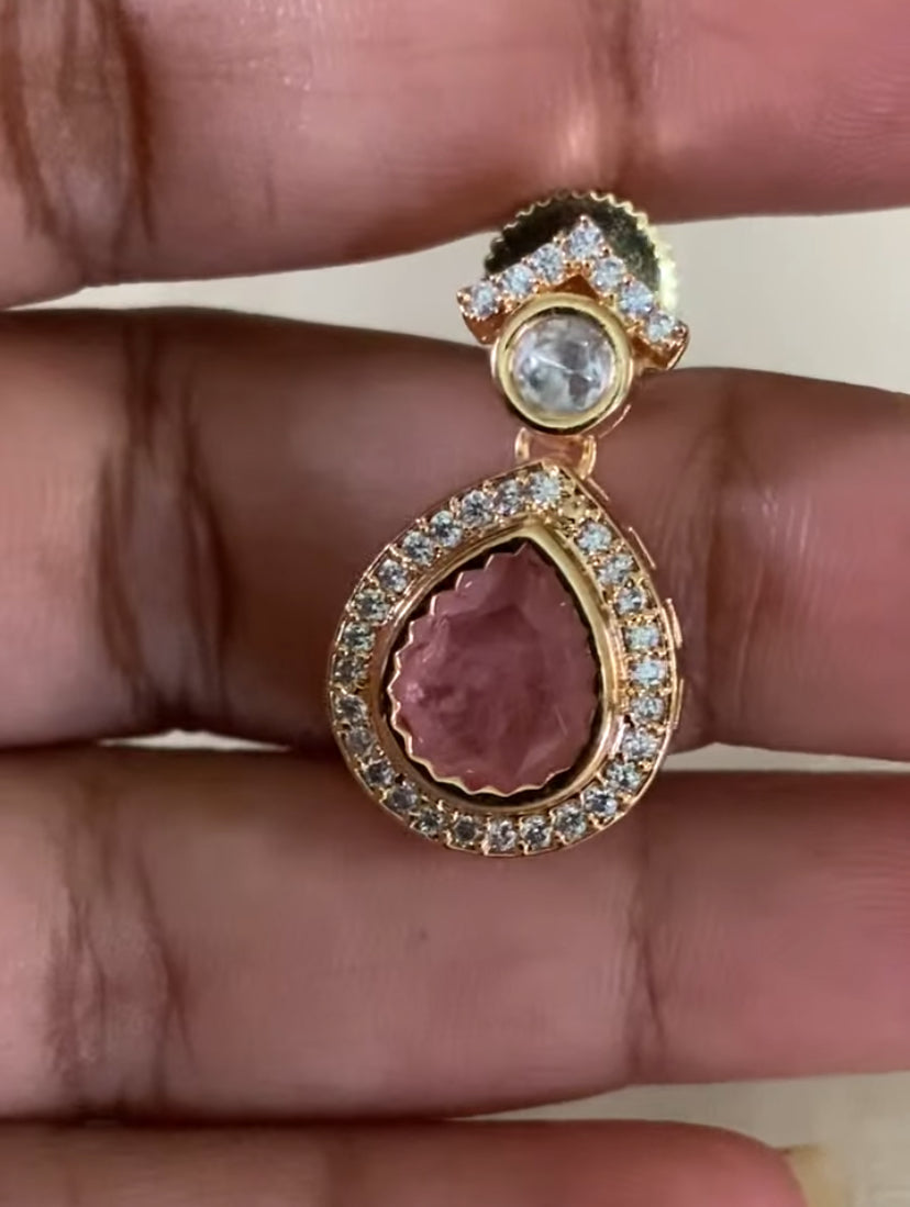 This Polki Kundan Pendant Chain Set features a beautifully handcrafted pendant showcasing intricate Kundan and Polki work. Designed on a sleek simple chain, it offers a graceful balance of tradition and minimalism — ideal for both ethnic and contemporary looks.The finely detailed Polki stones set in traditional Kundan craftsmanship add a royal touch, while the simple chain keeps it elegant and versatile for any occasion.