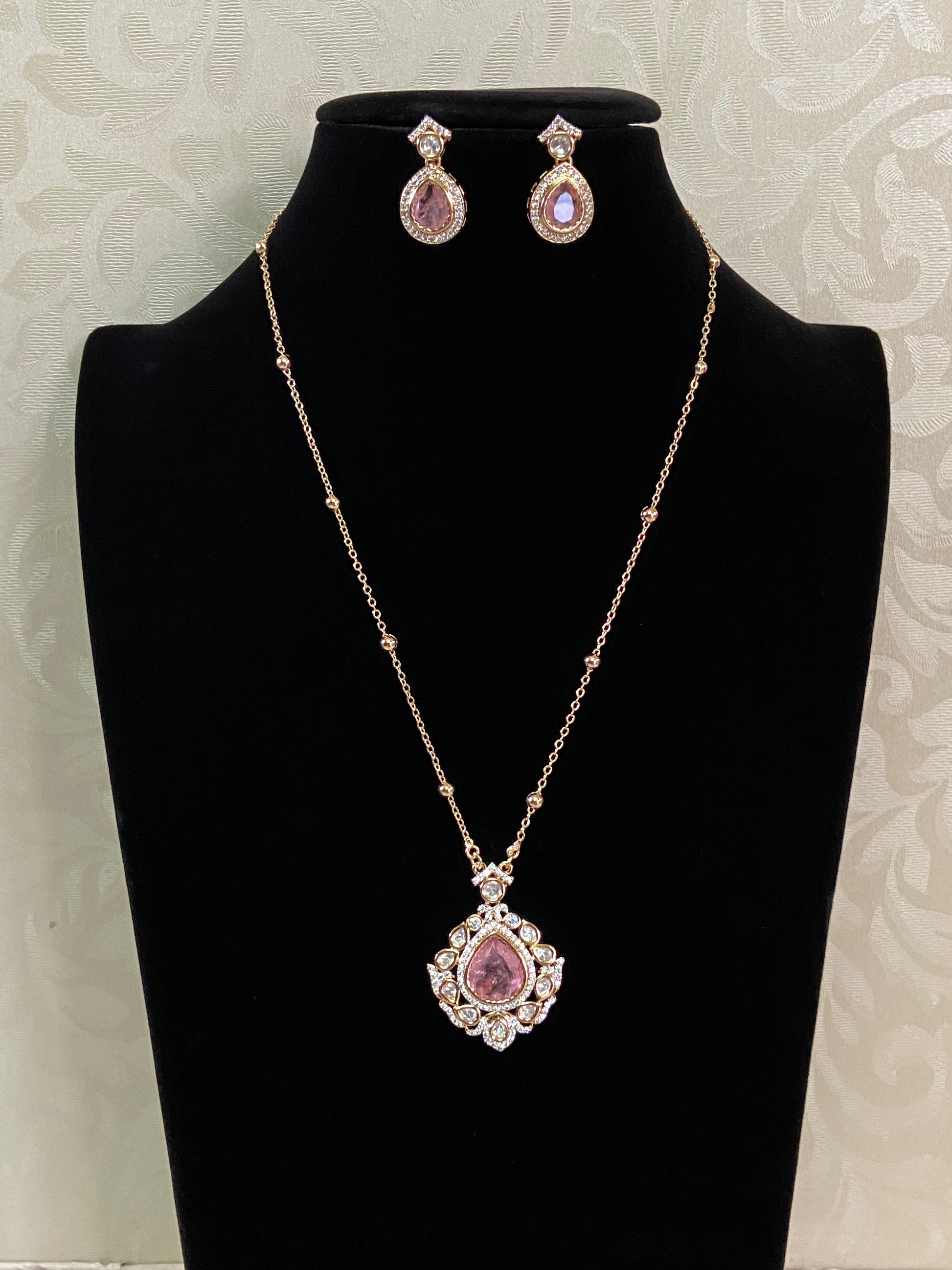Polki Kundan Pendant  Simple Chain Set | Indian Necklace