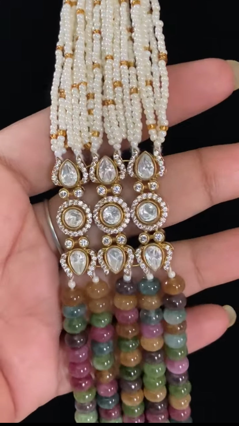 Grace your neckline with this stunning Polki Side Pendant Necklace, beautifully adorned with pearls and beads for a regal yet contemporary look.