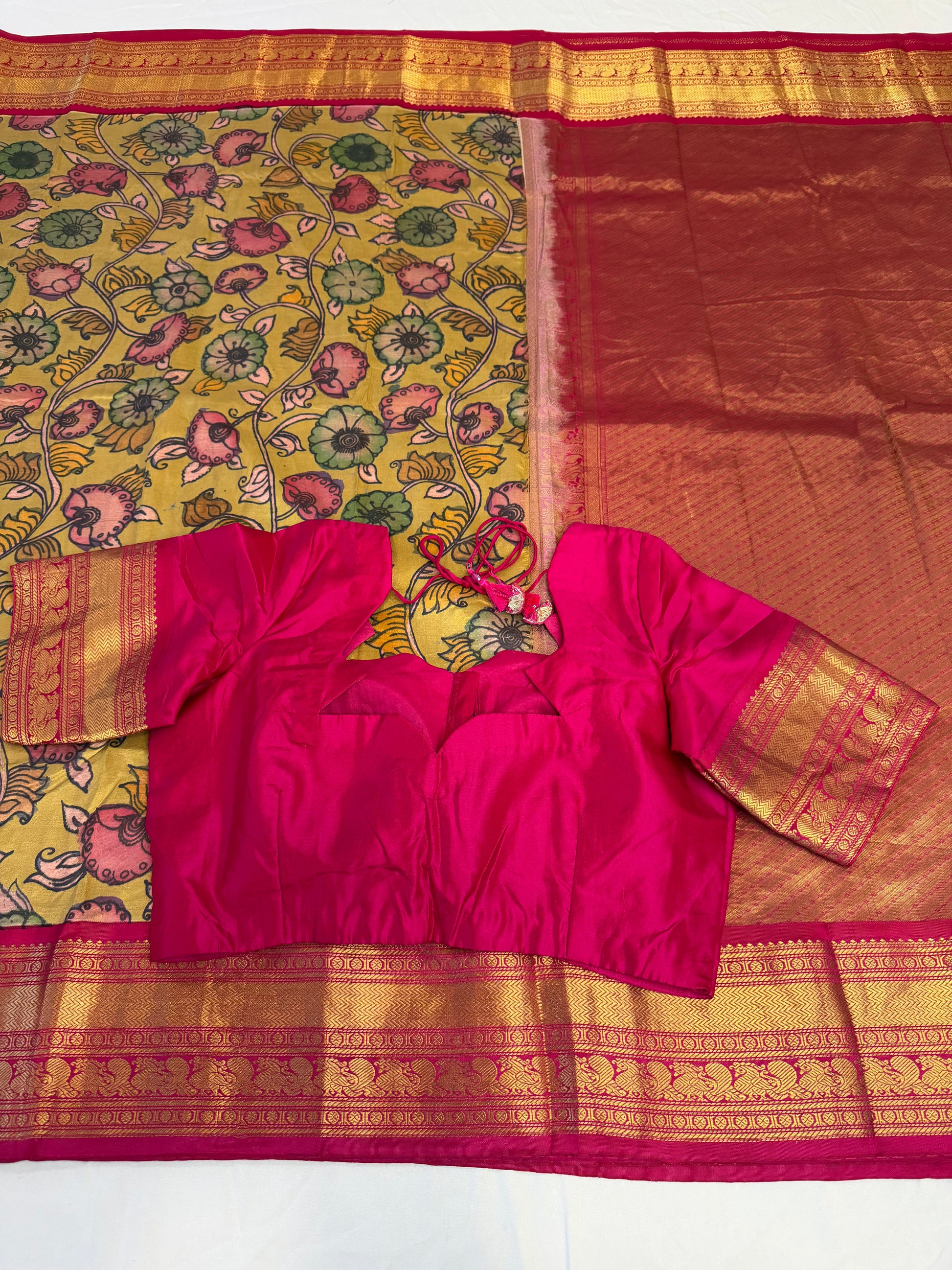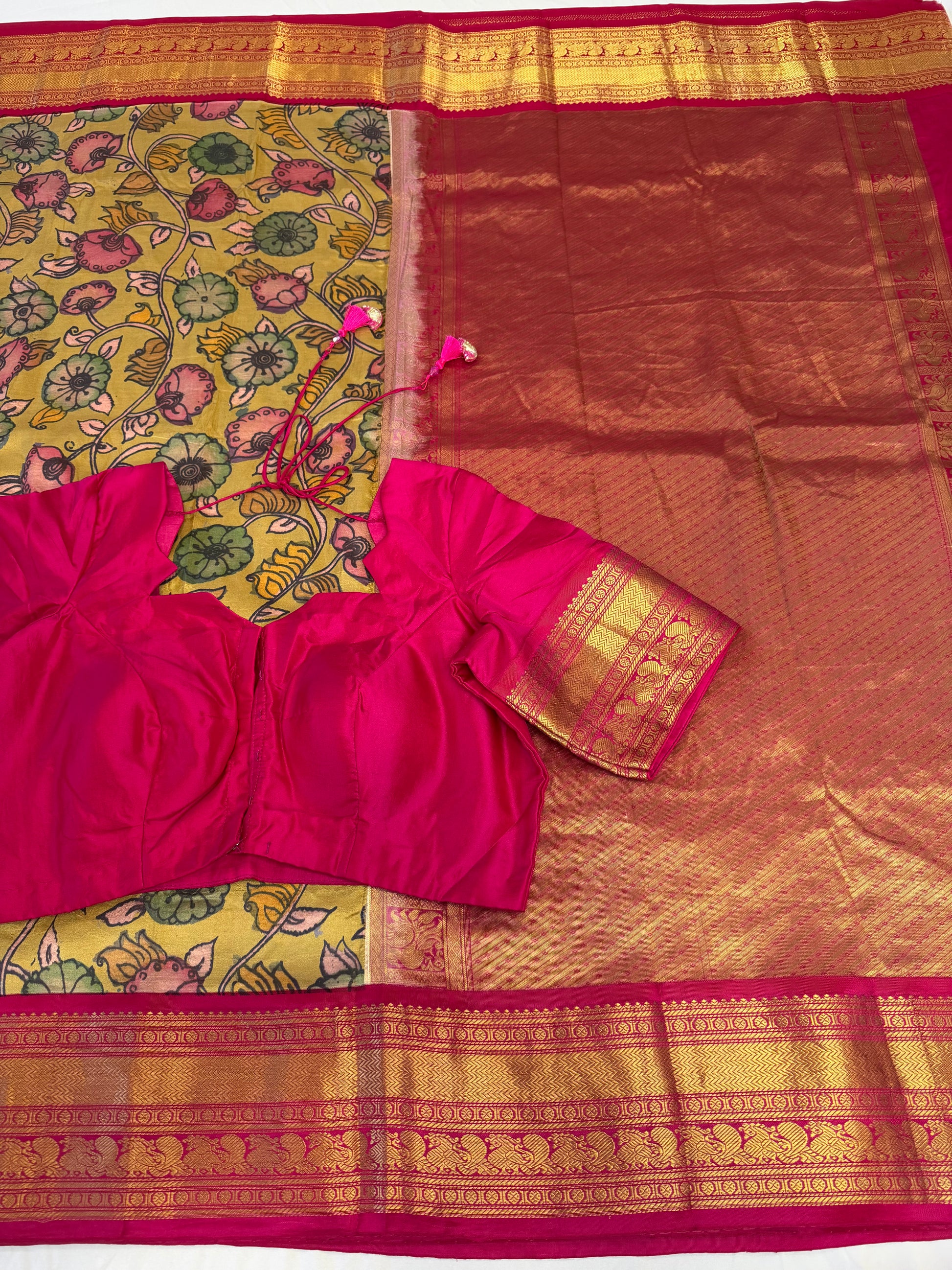 Pure Gadwal Kalamkari Kanchi Border Pattu Saree | Fusion Silk Saree | Indian Traditional Saree.