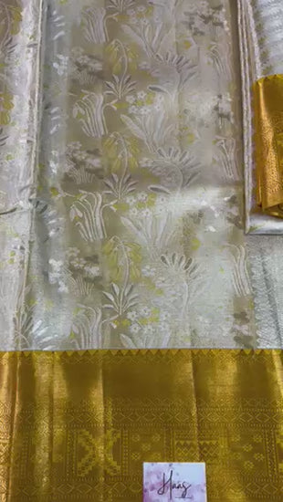 A pure Kanjivaram pattu saree is a luxurious and traditional South Indian saree made from high-quality silk, typically handwoven in the town of Kanchipuram, Tamil Nadu. Known for its vibrant colors, intricate designs, and lustrous texture, the Kanjivaram saree is often adorned with beautiful zari (gold or silver thread) work. The saree's hallmark is its rich, contrasting borders and pallu (the loose end draped over the shoulder) The body and pallu of the saree are usually woven separately and then skillfully joined, adding to the saree's durability and elegance. Kanjivaram sarees are highly regarded for their timeless appeal and are often chosen for weddings, festivals, and significant cultural occasions. fall & pico done.