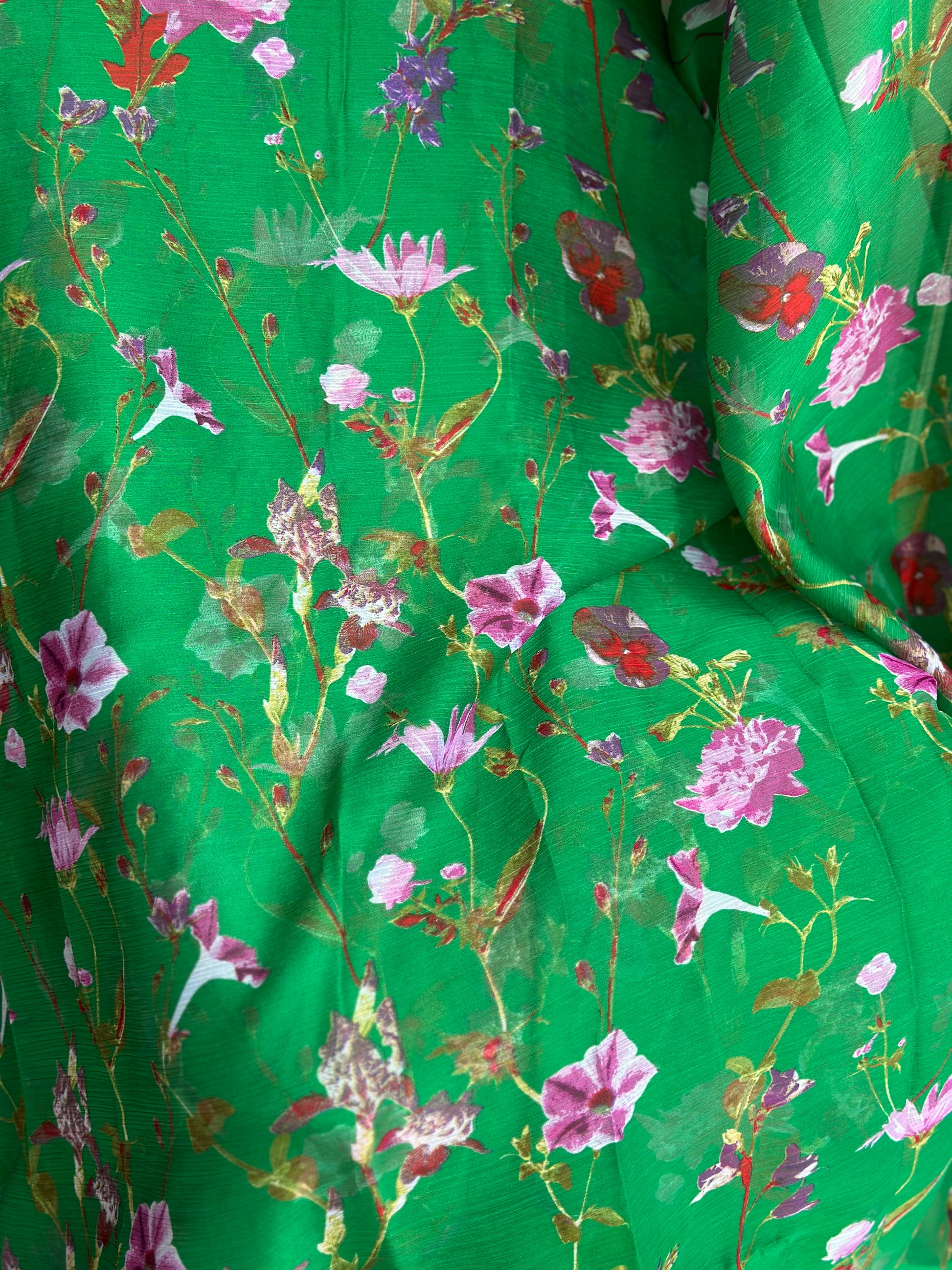 This elegant Chiffon Lightweight Saree comes with neatly finished pico and fall, ensuring a smooth and graceful drape. The saree can be beautifully paired with a Hass Collection Blouse to complete the look. Soft, airy, and comfortable to wear, it’s perfect for daily wear, parties, or festive occasions. A blend of simplicity and sophistication, this saree enhances your charm with effortless elegance.