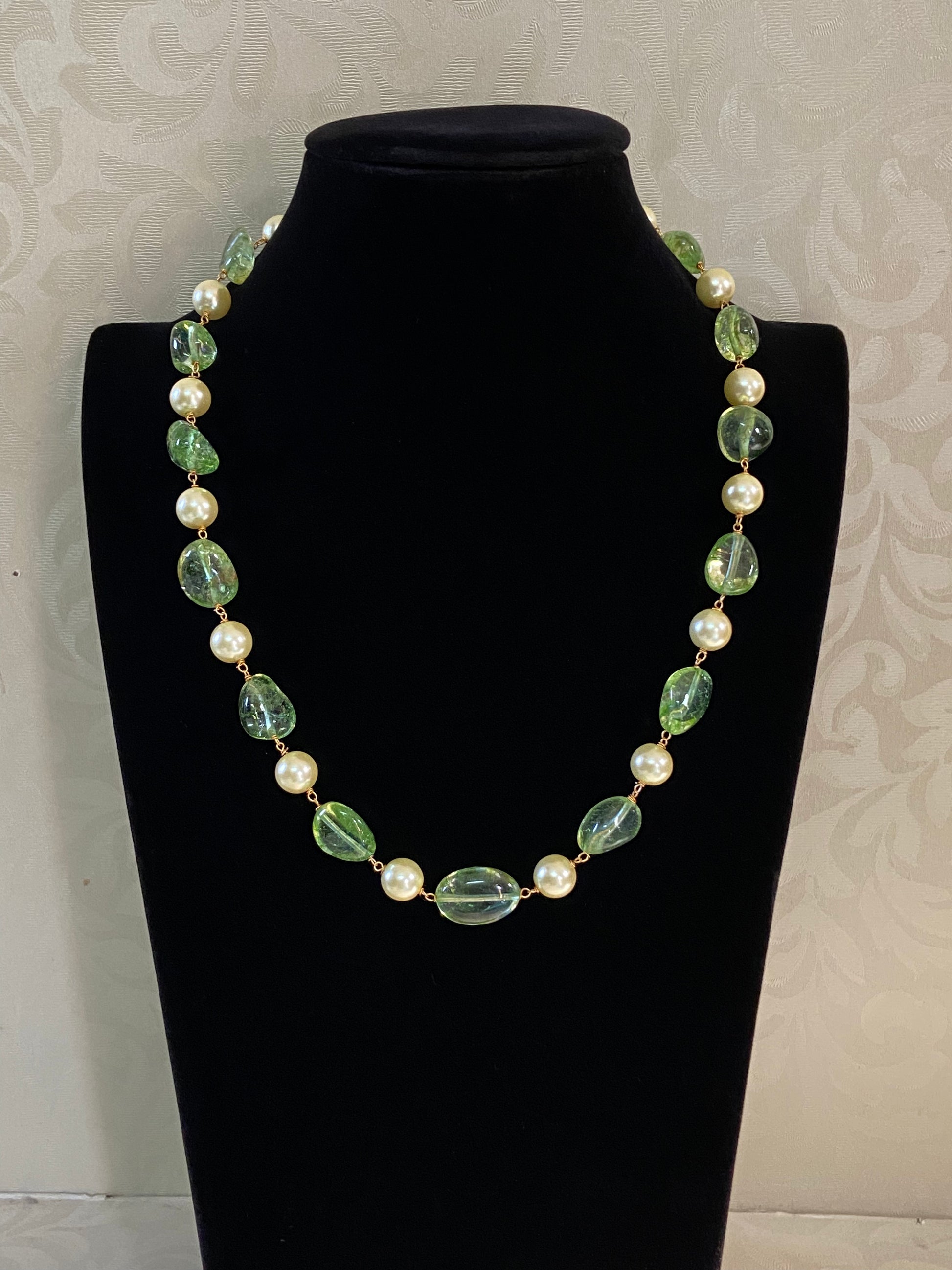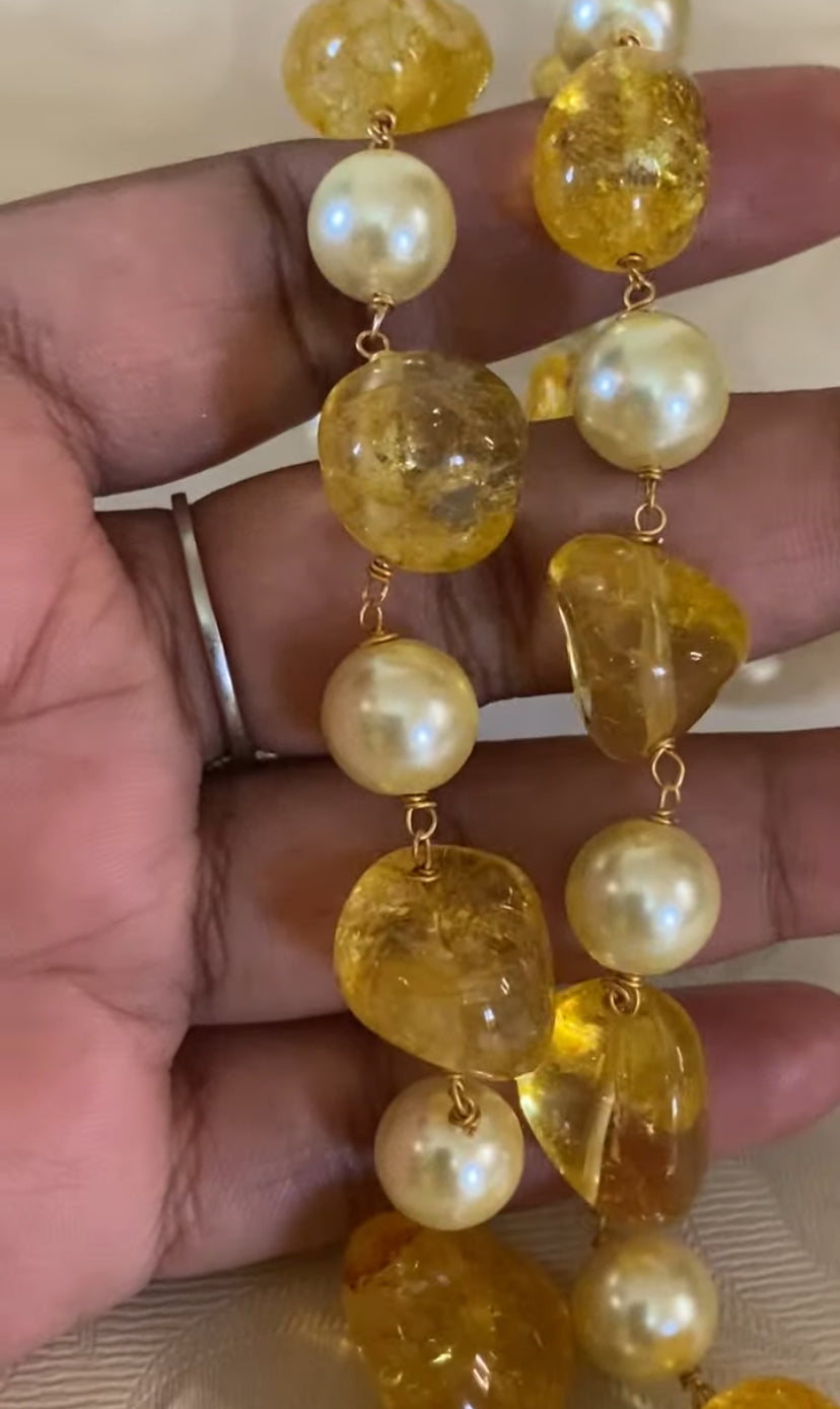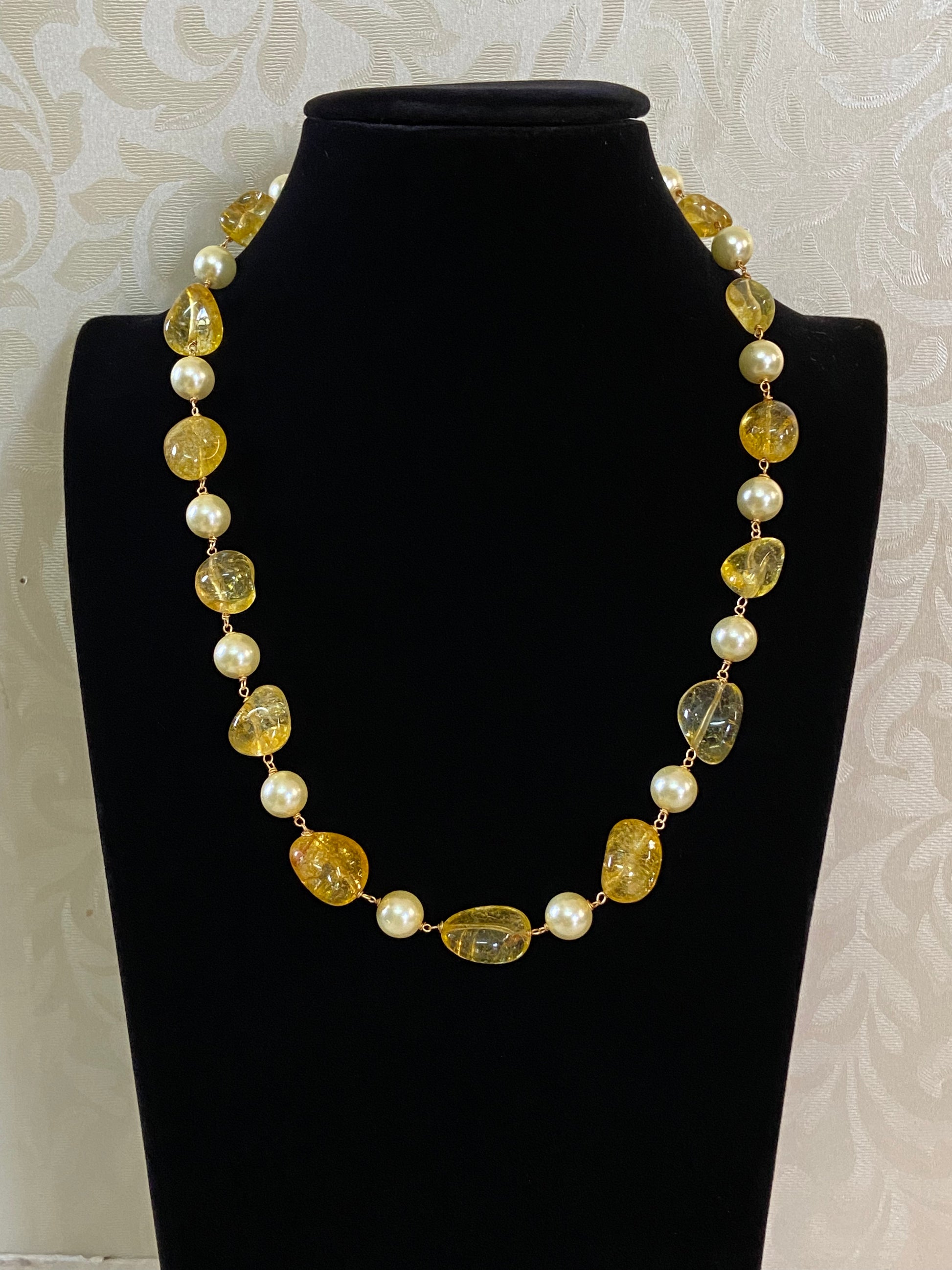 Simple Pearl & quartz stones Necklace |Indian Beads Necklace | Gift Idea