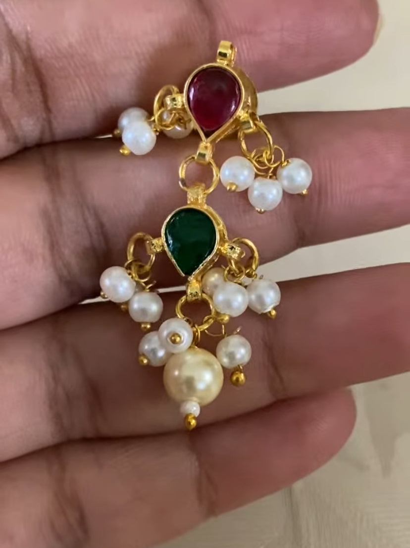 Graceful and grand, this triple-layer pearl & Kundan necklace with matching earrings blends classic beauty with traditional charm — perfect for festive and bridal looks."