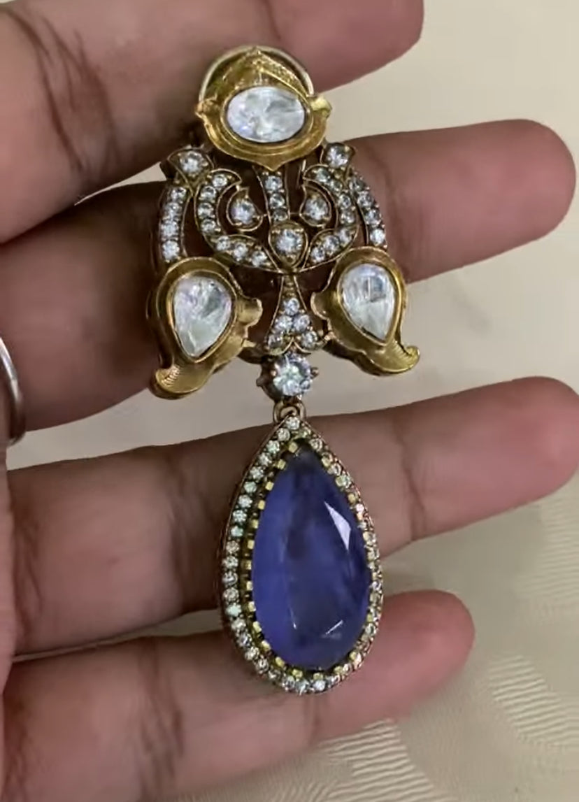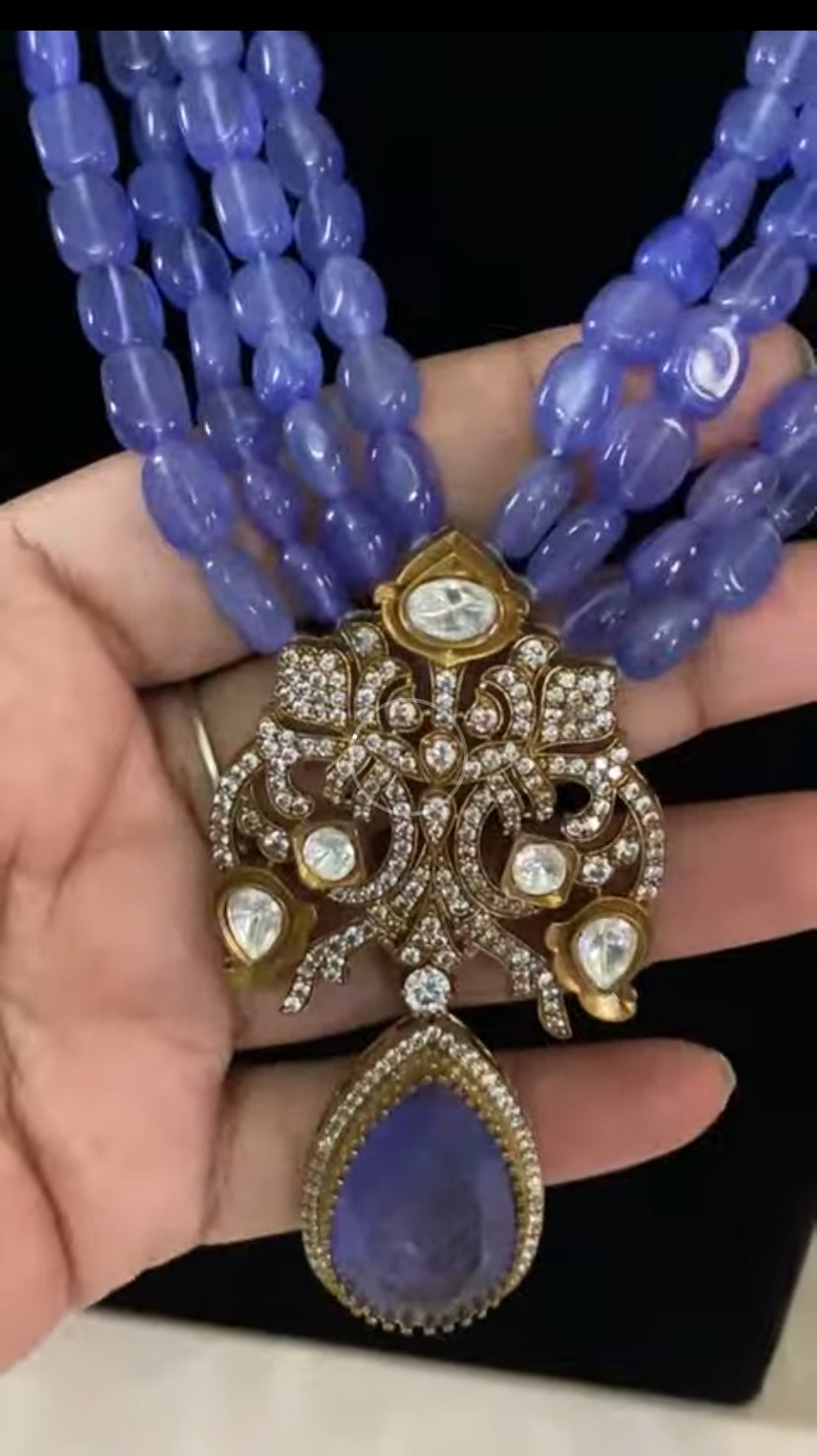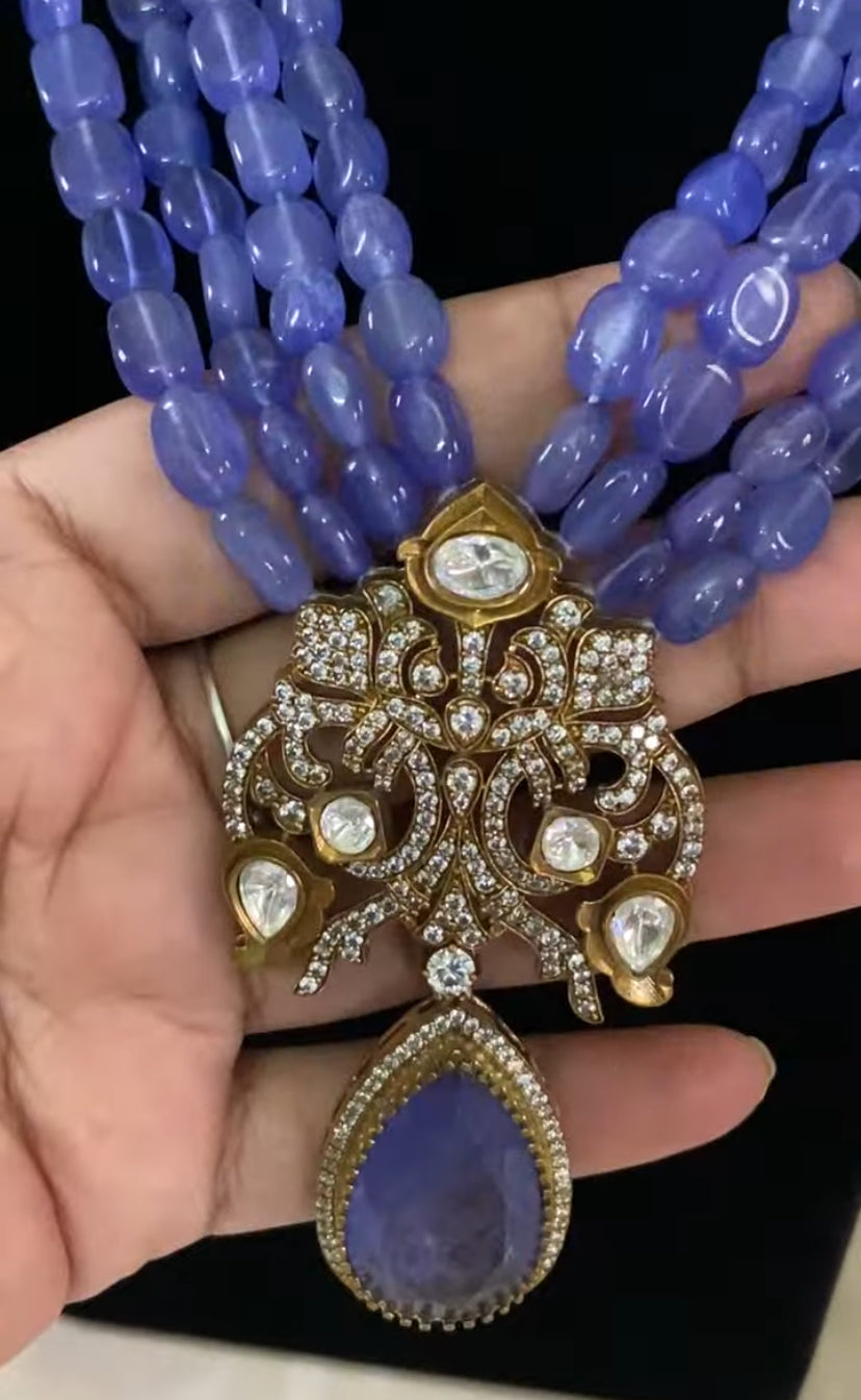 Victorian pendant Beads Necklace | AD pendant Mala With Earrings |Gift Idea
